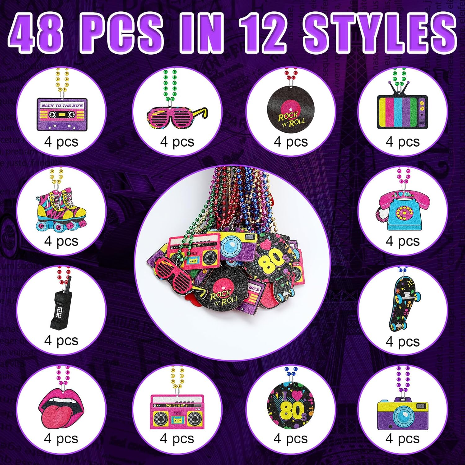 - Sufficient to Wear and Share: you will get 48 pieces of 80s beaded charm necklaces in 12 assorted styles, 4 pieces per style, which can be worn in different combinations, sufficient quantities and different styles can meet your party dress up needs, and you can also give them as holiday gifts for your family members and friends
