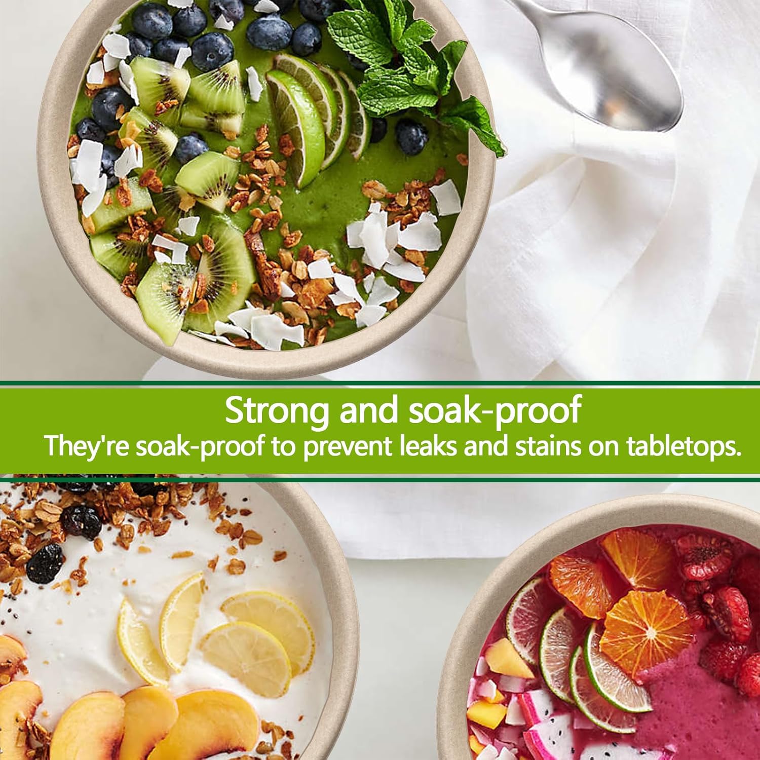 24 Oz Disposable Bowls, [100 Pack] Paper Bowls Disposable - Heavy Duty and Eco-friendly Sugarcane and Bamboo Bagasse Biodegradable Bowls for Cereal, Rice, French Fries - Convenient and Compostable