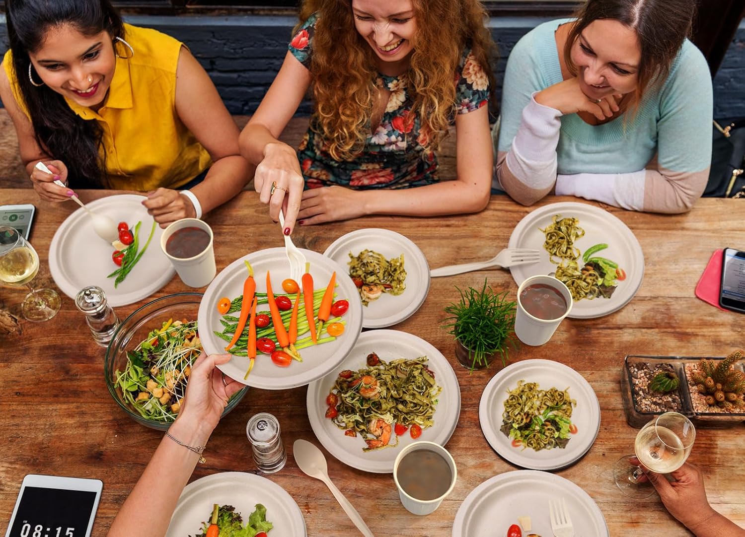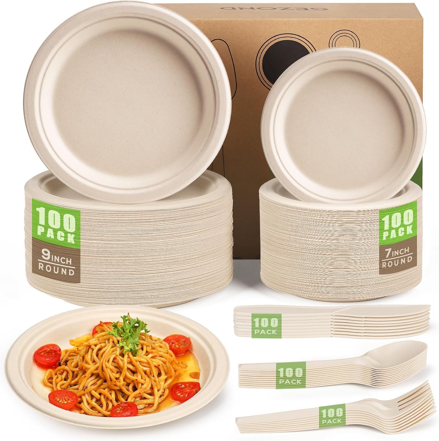 Gezond Compostable Paper Plates Set 500pcs Disposable Plates Heavy-Duty Plate Cutlery Eco-friendly Dinnerware Set for Party Picnic