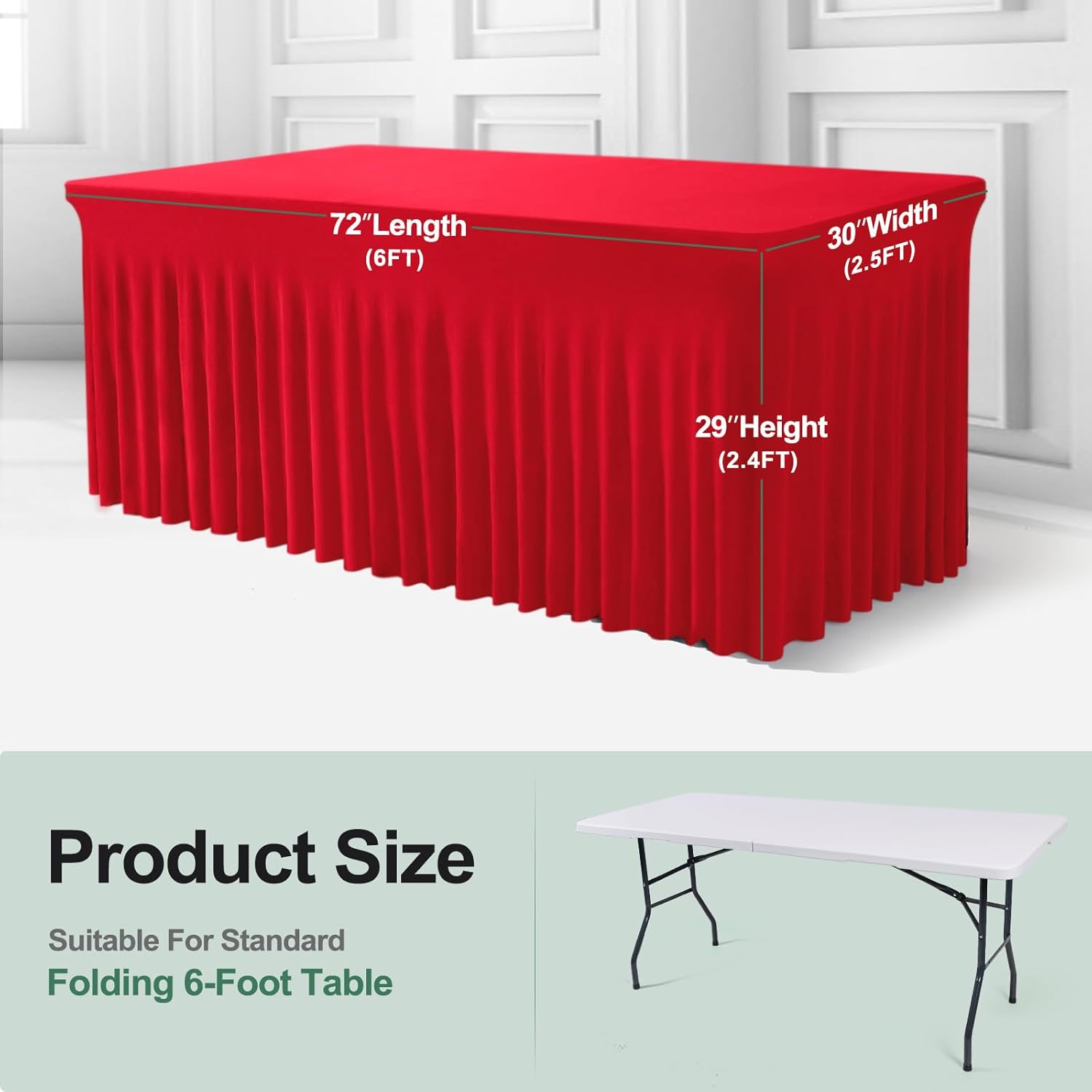 Table Skirts for Rectangle Tables 6ft - 2 Pack One-Piece Red Tablecloths and Skirt, Wrinkle Resistant Ruffles Elastic Cover for Banquets, Weddings, Events, Parties