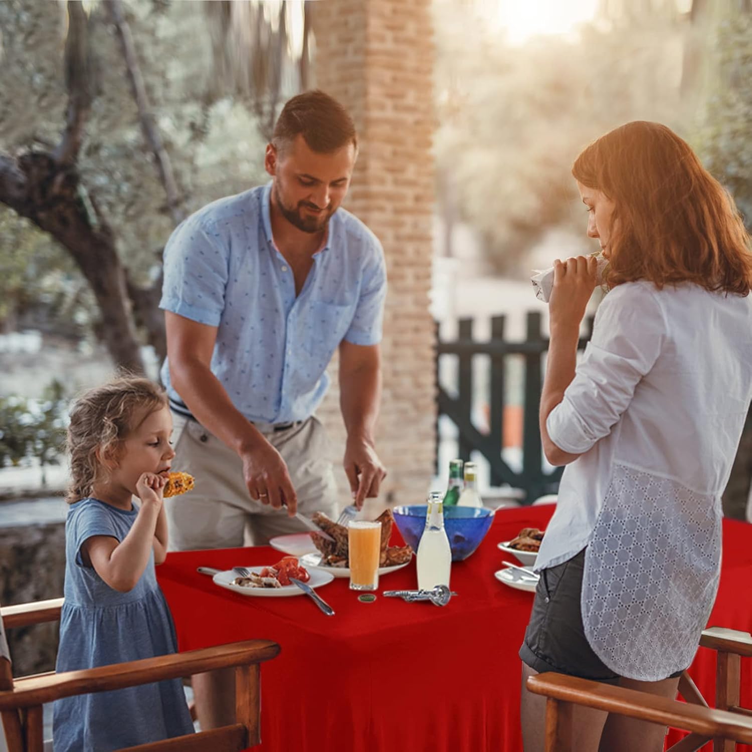 - Stretchy Wrinkle-Resistant Fabric - The table cover is made of silky smooth flexible wrinkle-resistant material, and it makes the table look neat and professional. Fitted table covers for 6 foot tables fit the standard 6-foot banquet table that is 72 "L X 30 "W X 29 "H