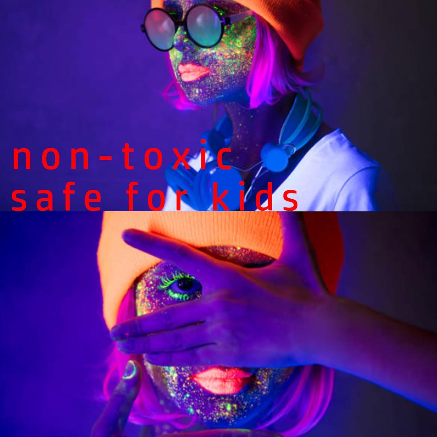 - SUIT FOR MANY OCCATION --- High pigment glow blacklight face body paint can use for eye ,face and body. Fit for fancy ball, temporary tattoos,parties, club,photoshoot, or night-out.Festival like Halloween,Christmas, New Year, Birthday, Valentine's Day,etc