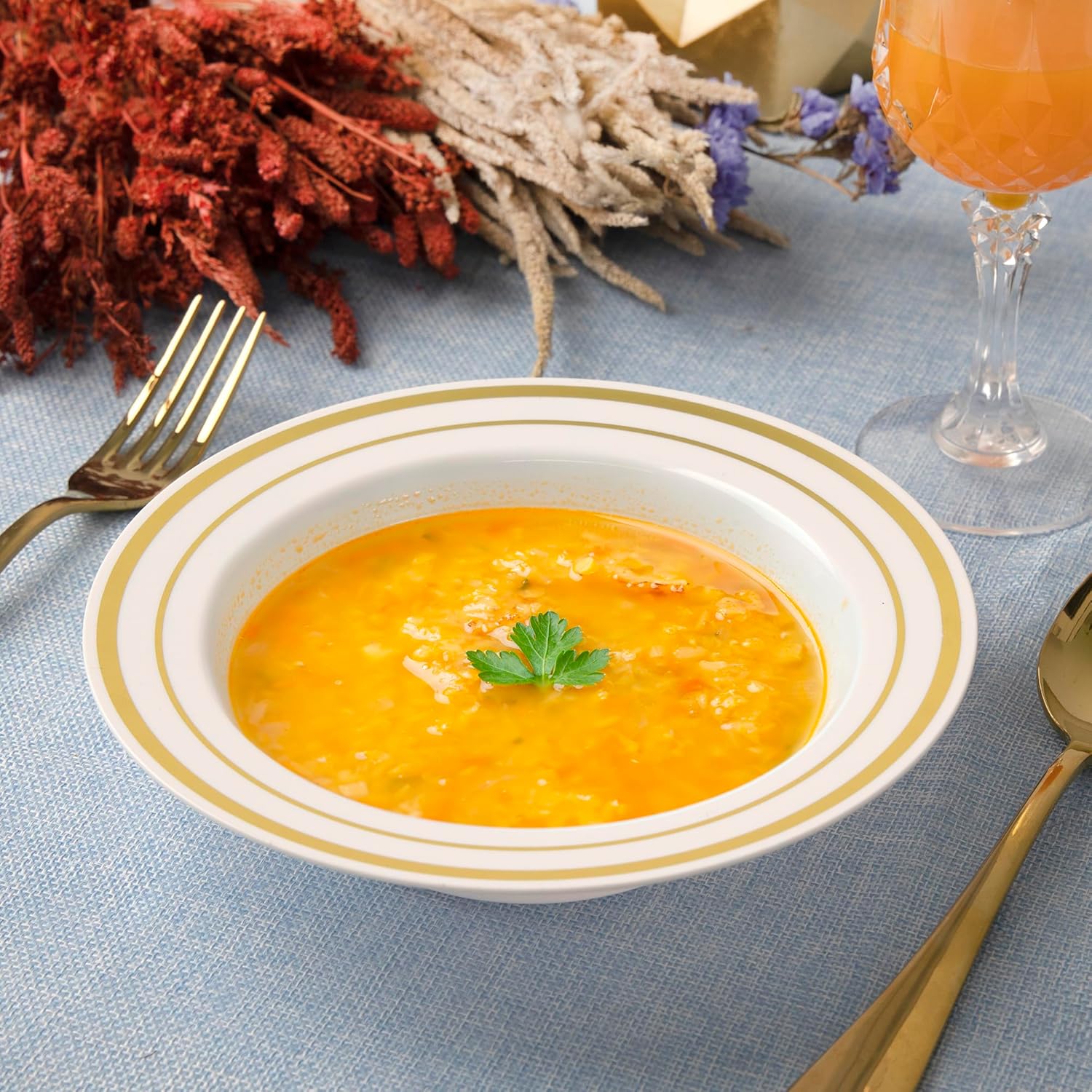 SETUP [12 oz. - 50 Piece Dessert Soup Bowls with Gold Rim, Plastic Bowls Disposable - Premium Heavy-Duty Disposable Soup Bowls for Party, Wedding, and All Occasions