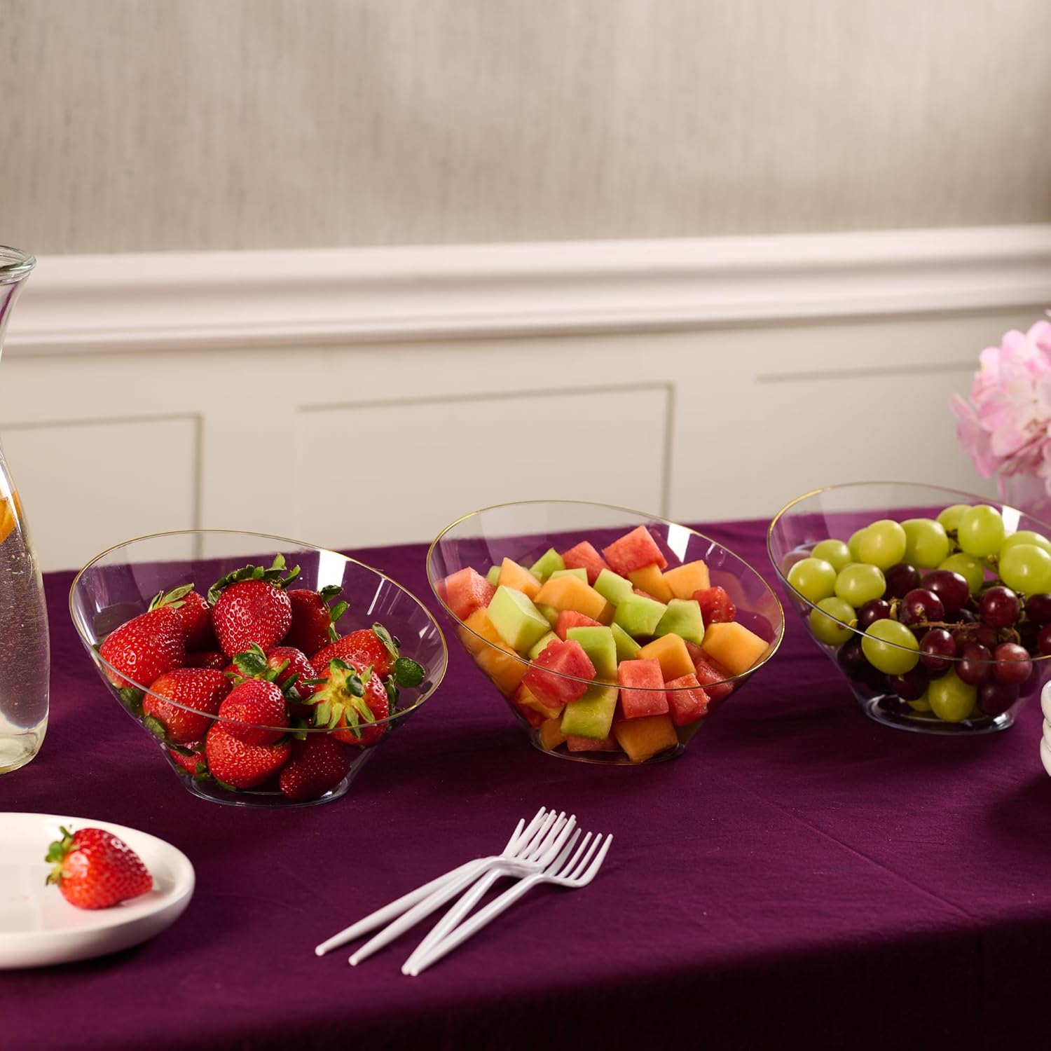 - Elegant gold rimmed clear plastic bowls enhance your table and add a sleek touch to your party décor.