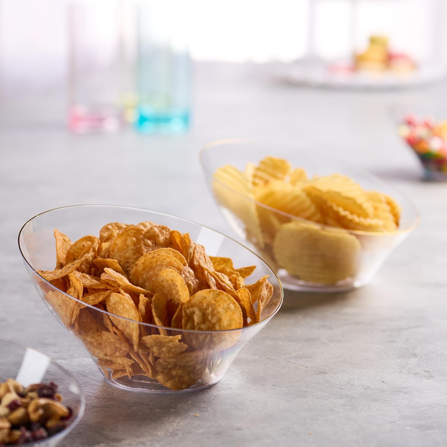 - Hard plastic bowls for snacks, candy, appetizers, chips, serving, desserts, ice cream, sauces, dips, and more.