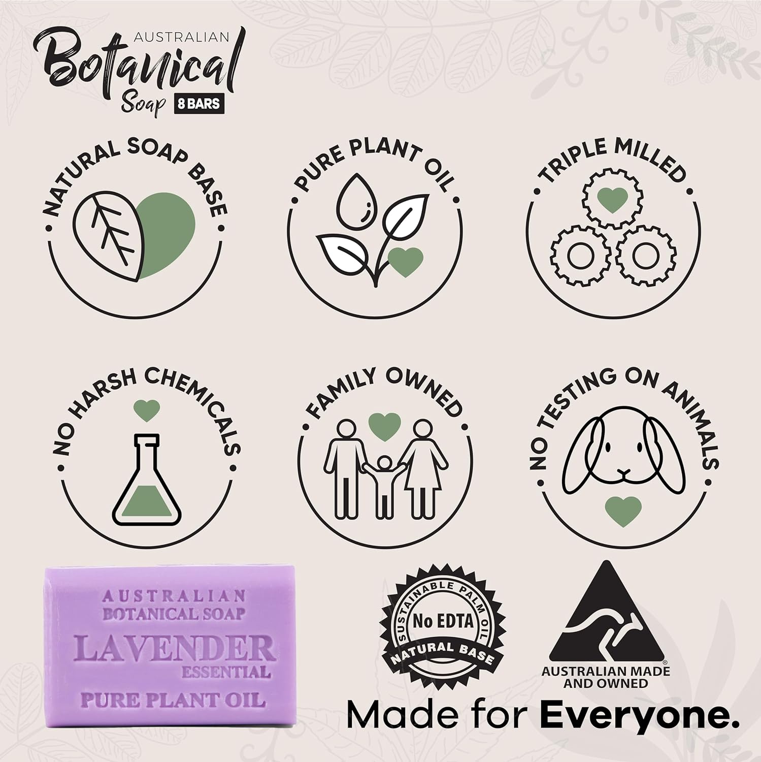 Australian Botanical Soap Lavender with Essential Oil 6.6 oz Triple Milled Luxury Soap Bar Enriched with Shea Butter, Pack of 1