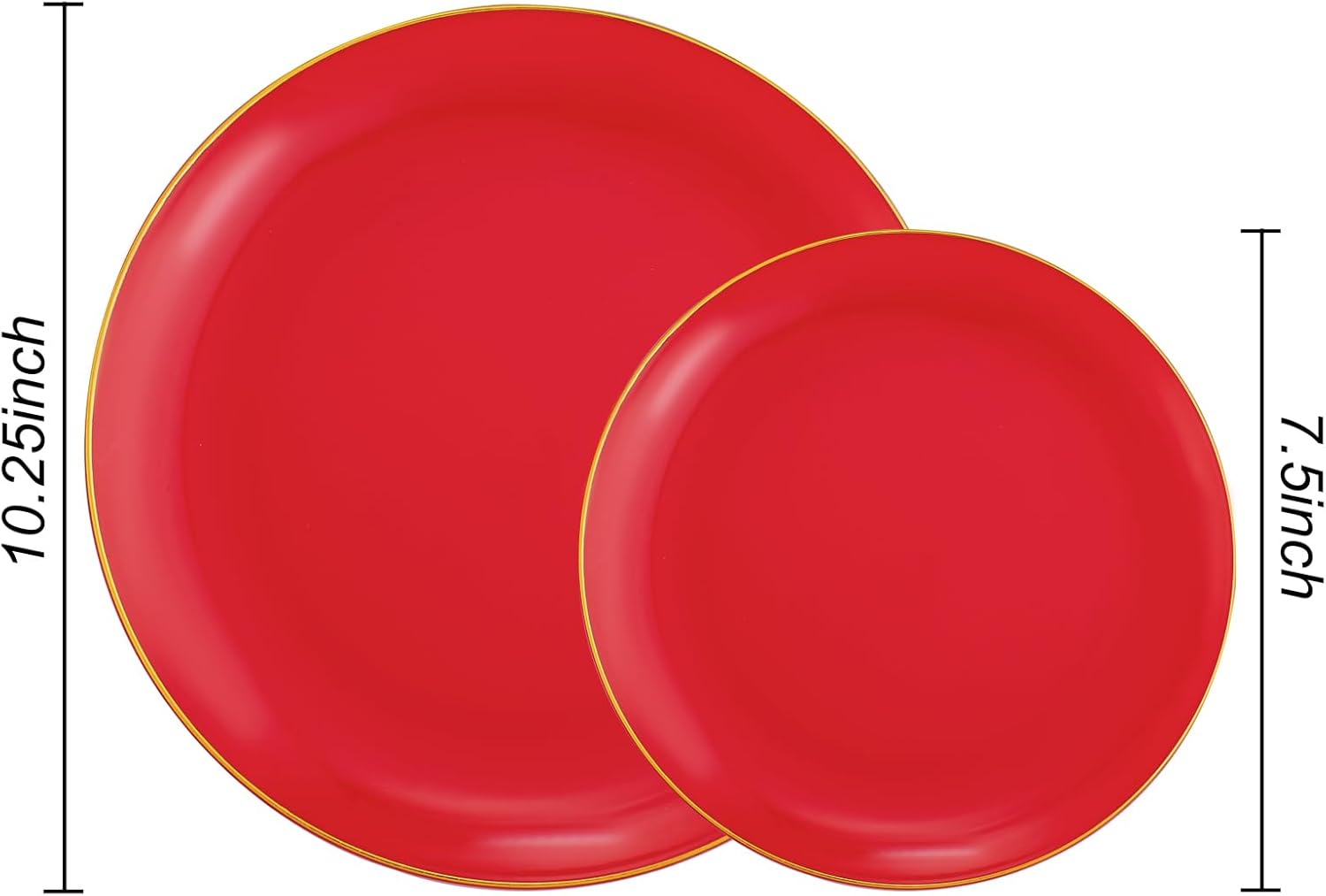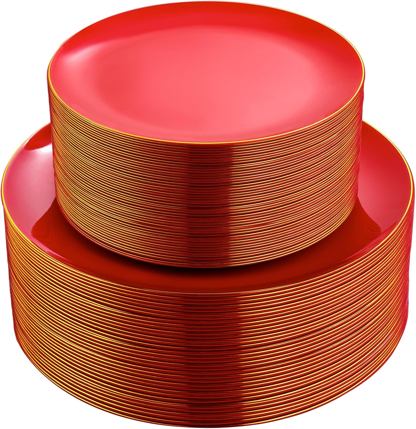 - HIGH AESTHETIC DESIGN: Our red plastic plates feature a typical disc design. The edge of the red disposable plates are decorated with a circle of gold, which is very exquisite and beautiful.