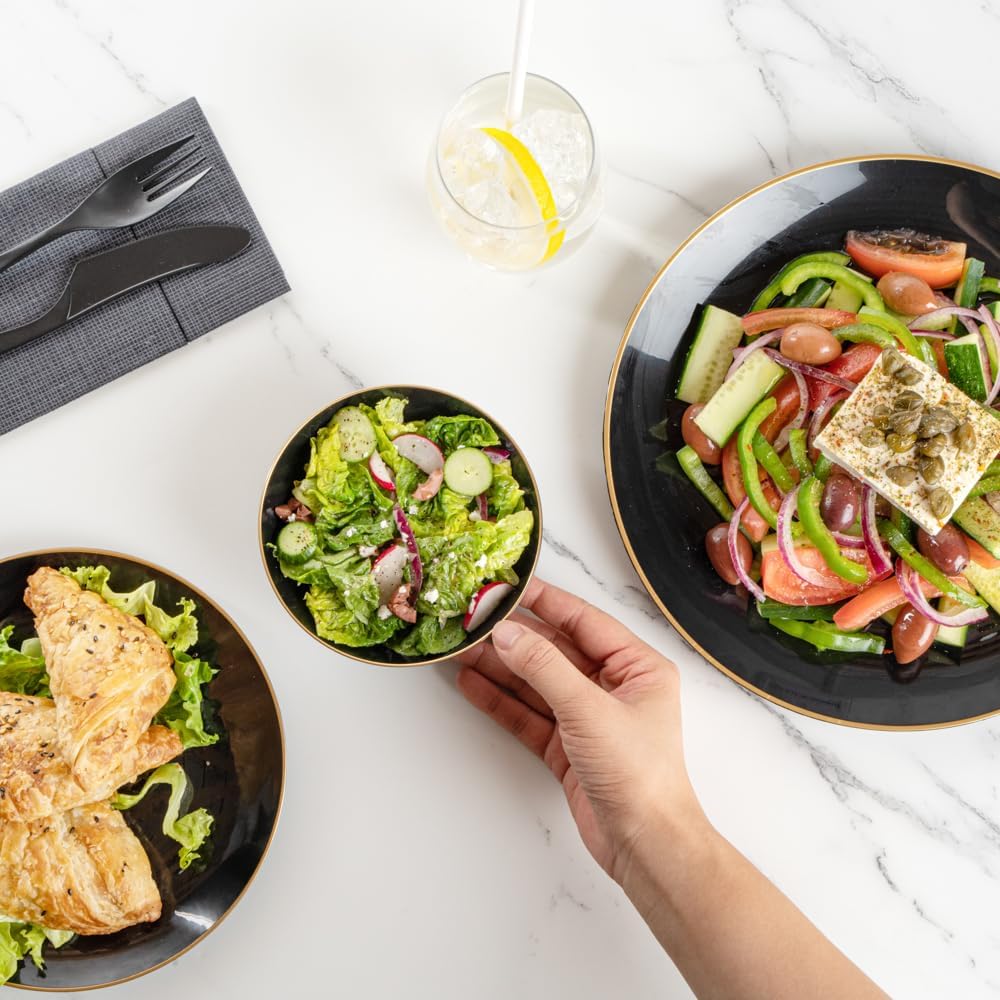 Restaurantware-Moderna 6 Ounce Plastic Bowls, 20 Durable Disposable Salad Bowls - Gold-Rimmed, Heavy-Duty, Black Plastic Fancy Bowl, For Warm And Cold Foods, Ideal For Restaurants