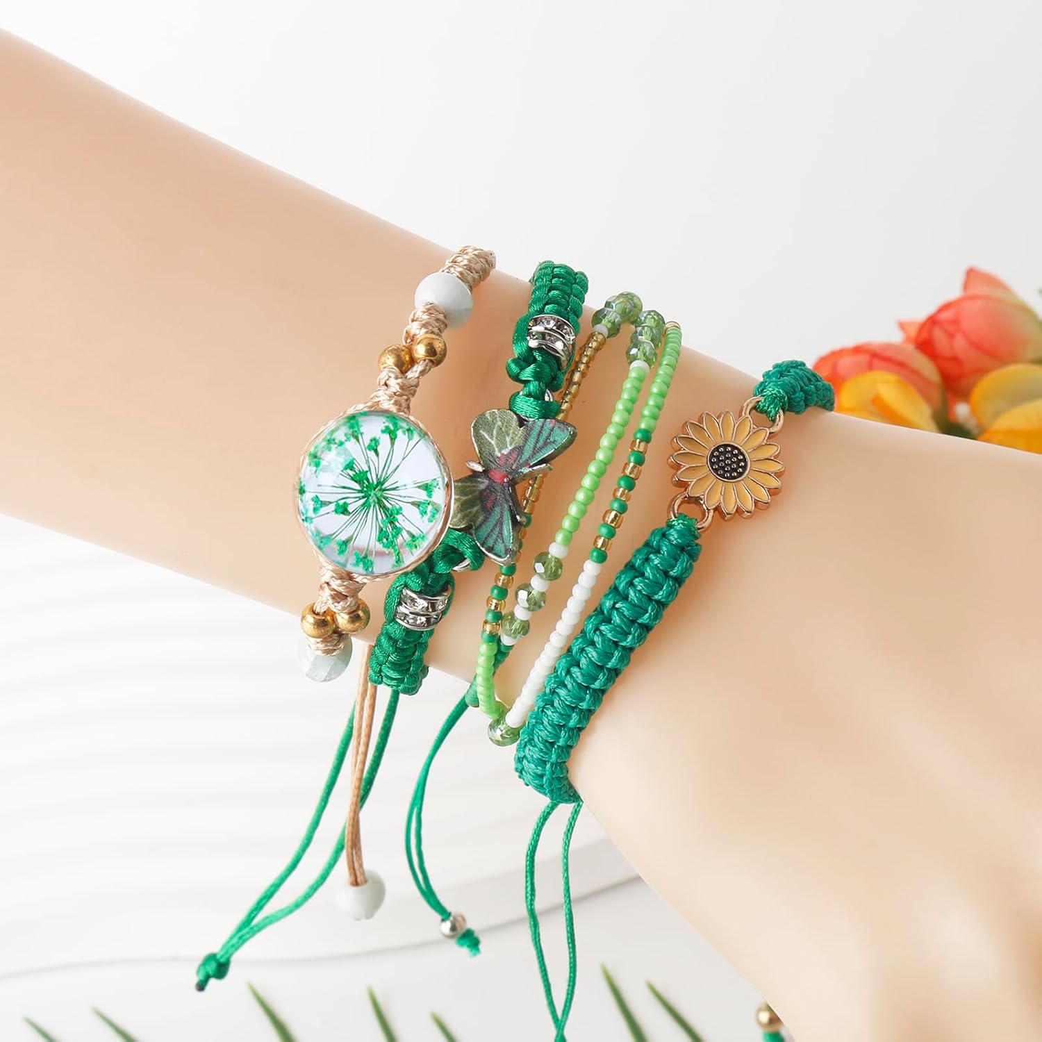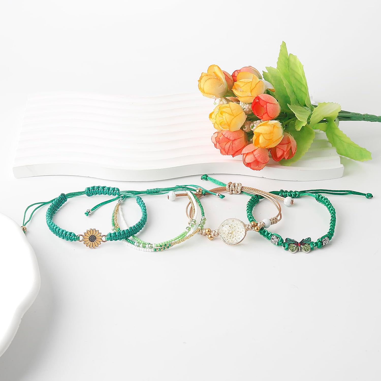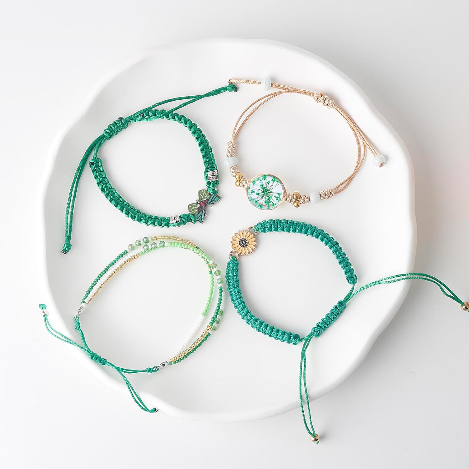 - Beautiful girl jewelry: gifts for teen girls/4CPS girl charm bracelet consists of 4 bracelets, they are: butterfly string bracelet / daisy string bracelet / immortal flower bracelet / beaded bracelet. Wear colorful girl beaded bracelets to make you feel good every day.