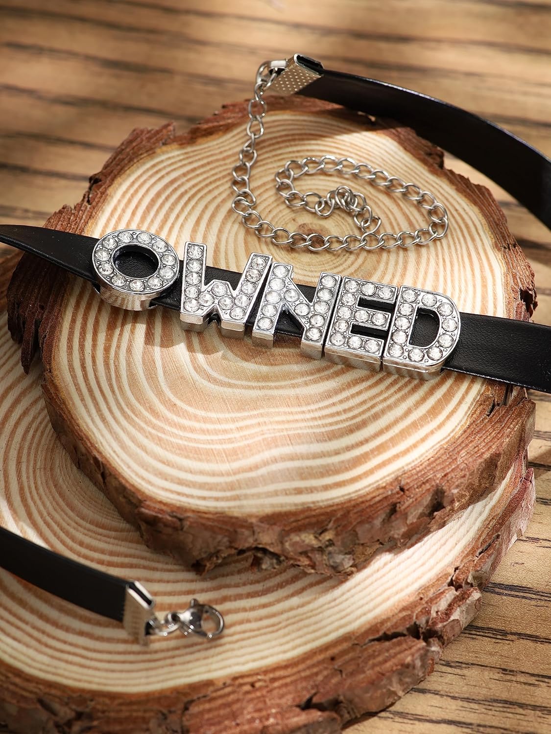 Sacina Gothic Punk Cute Owned Choker, Black Choker, Black PU Leather Chocker Collar, Gothic Goth Necklace, Costume Jewelry, Halloween Christmas Jewelry Gift for Women