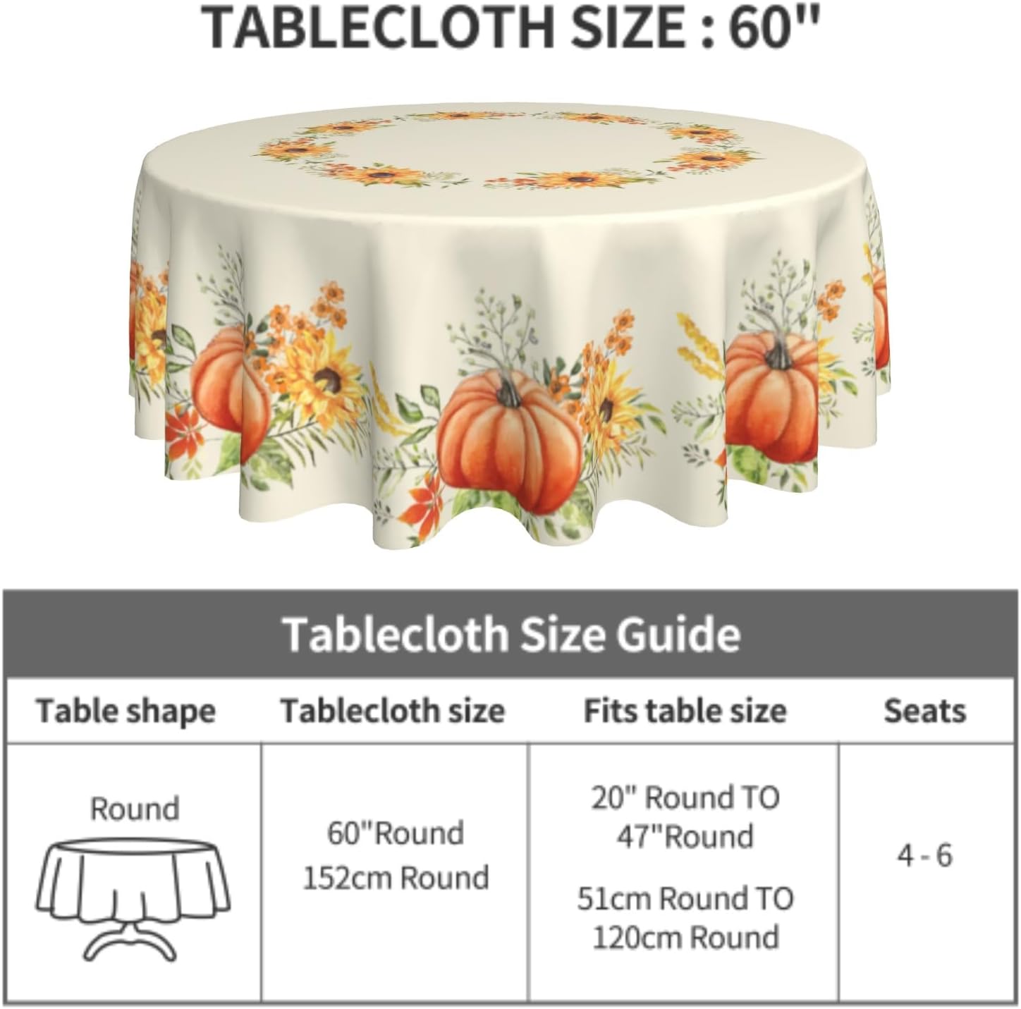- UNIQUE DESIGN: The autumn table cloth measures 60in/152cm in diamemter, which is suitable for most table size. Round table cloth can make you experience a positive energy of family reunion and bring you a sweet holiday atmosphere in daily life.