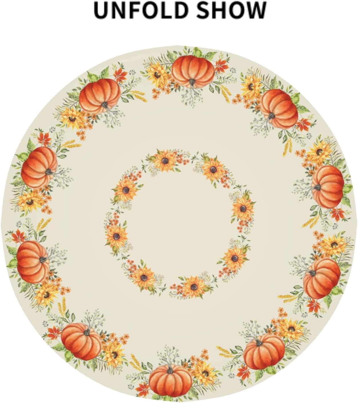 Giwawa Fall Autumn Round Tablecloth 60Inch Pumpkin Sunflower Circle Reusable Heat Resistant Washable Table Cloth Cover for Kitchen Dining Seasonal Holiday Farmhouse Decor