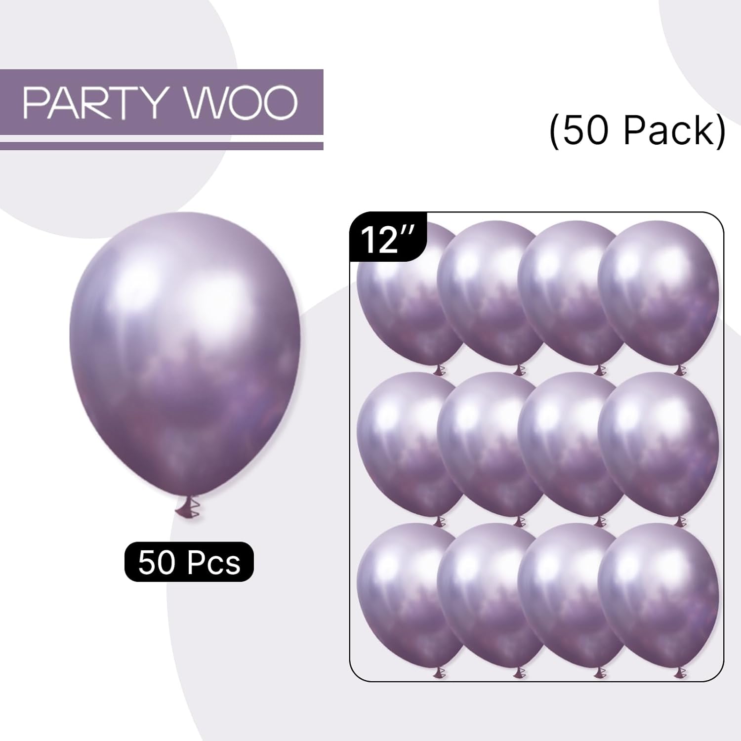 - 50 PCS METALLIC LIGHT PURPLE BALLOONS PACK: Package includes 12 inch balloons (50 pcs), ideal birthday decorations, party decorations, wedding decorations , baby shower decorations