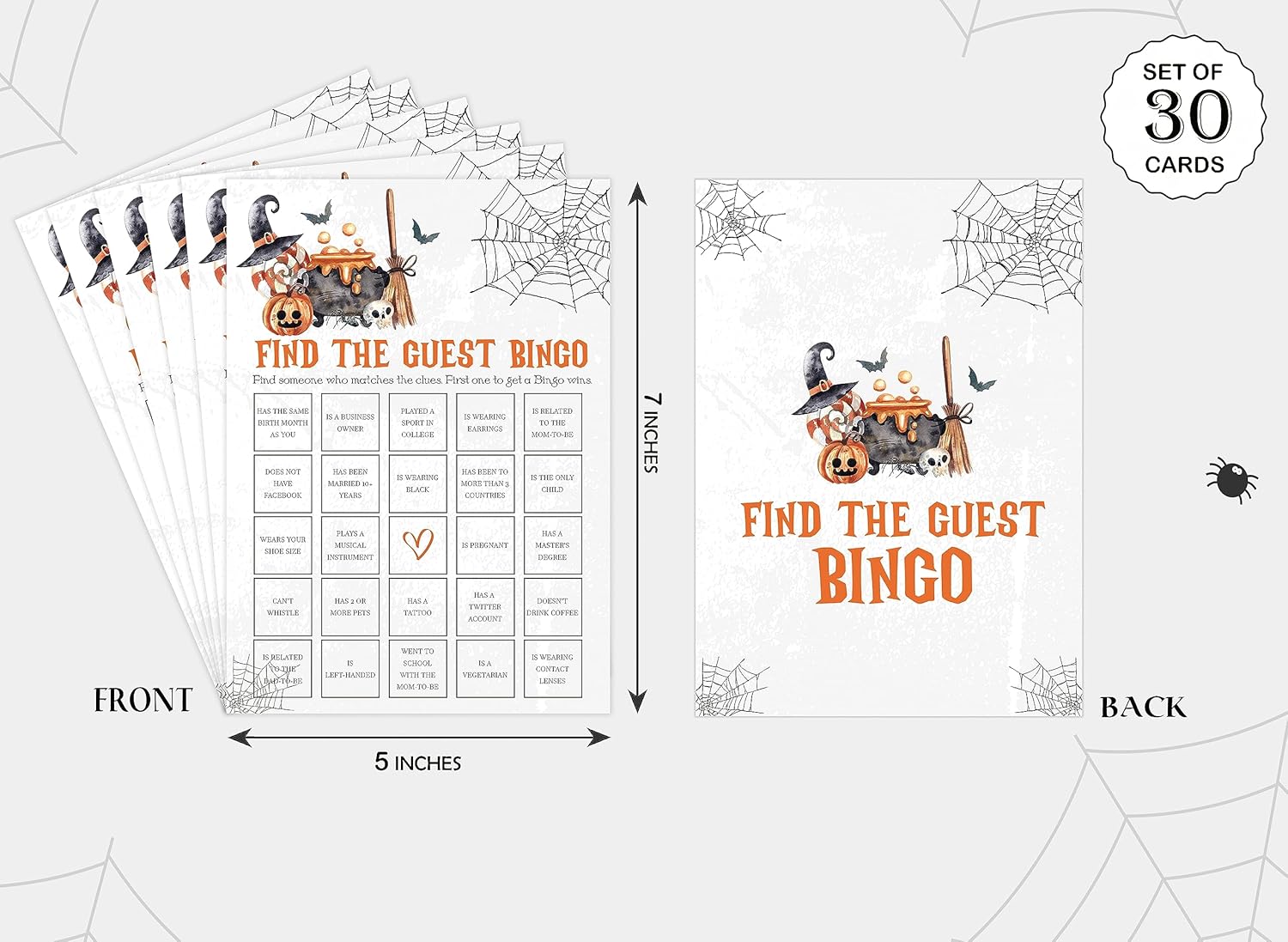 - Package Include: This Halloween baby shower game includes 30 game cards, each 5×7 inches, to meet Halloween baby shower needs.