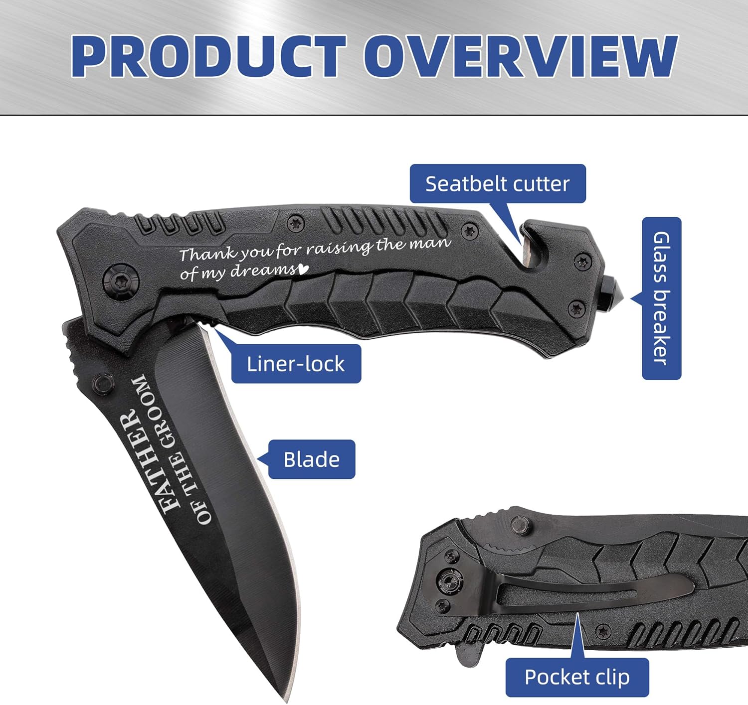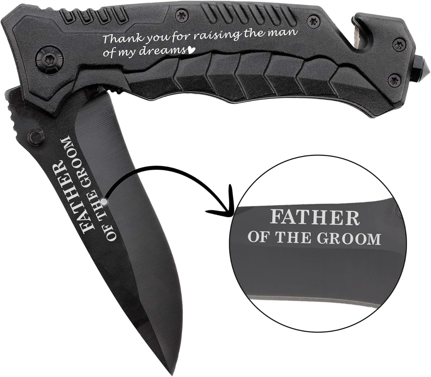 Father of the Groom Wedding Gifts from Bride - Engraved Pocket Knife - Thank You for Raising the Man of My Dreams, Gift for Father in Law from Daughter in Law, Father of Groom Gift Ideas