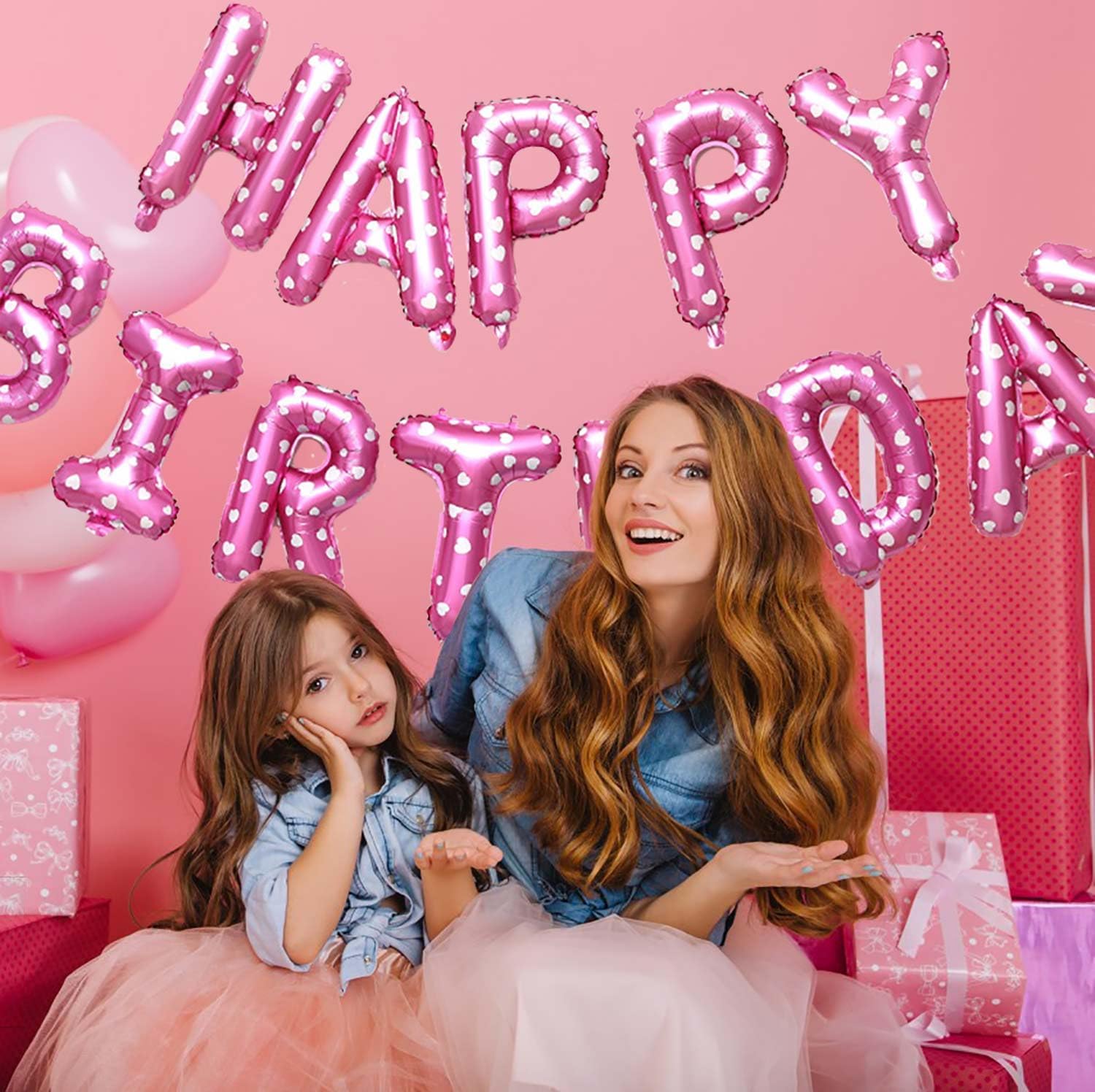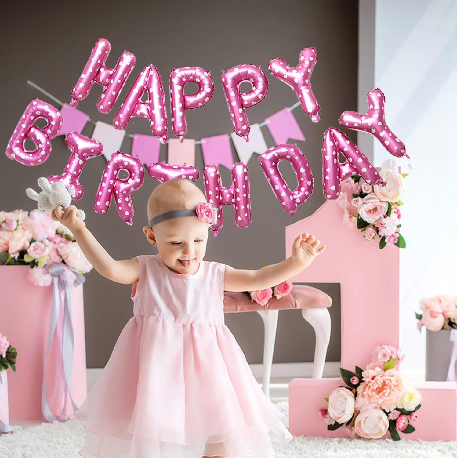 KALOR Pink Happy Birthday Balloons Banner, 16 Inch Mylar Foil Letters Balloon Sign for Women, Men, Boys & Girls Kids Birthday Decorations Photo Backdrop