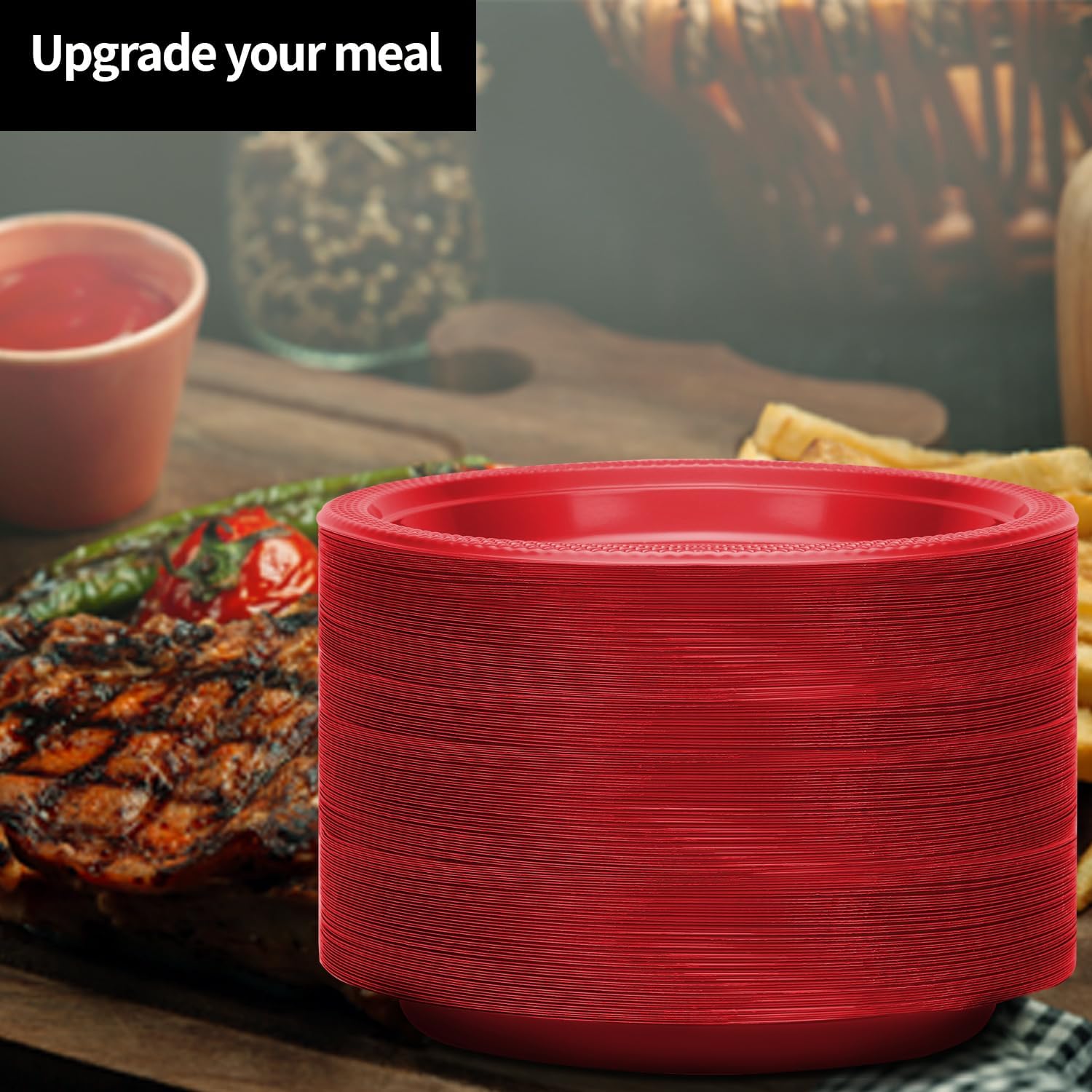 - INCLUDES: Each set offers 600 red 7-inch plates, suitable for dinner, dessert, or picnics, making it an ideal addition to your plastic dinnerware collection.
