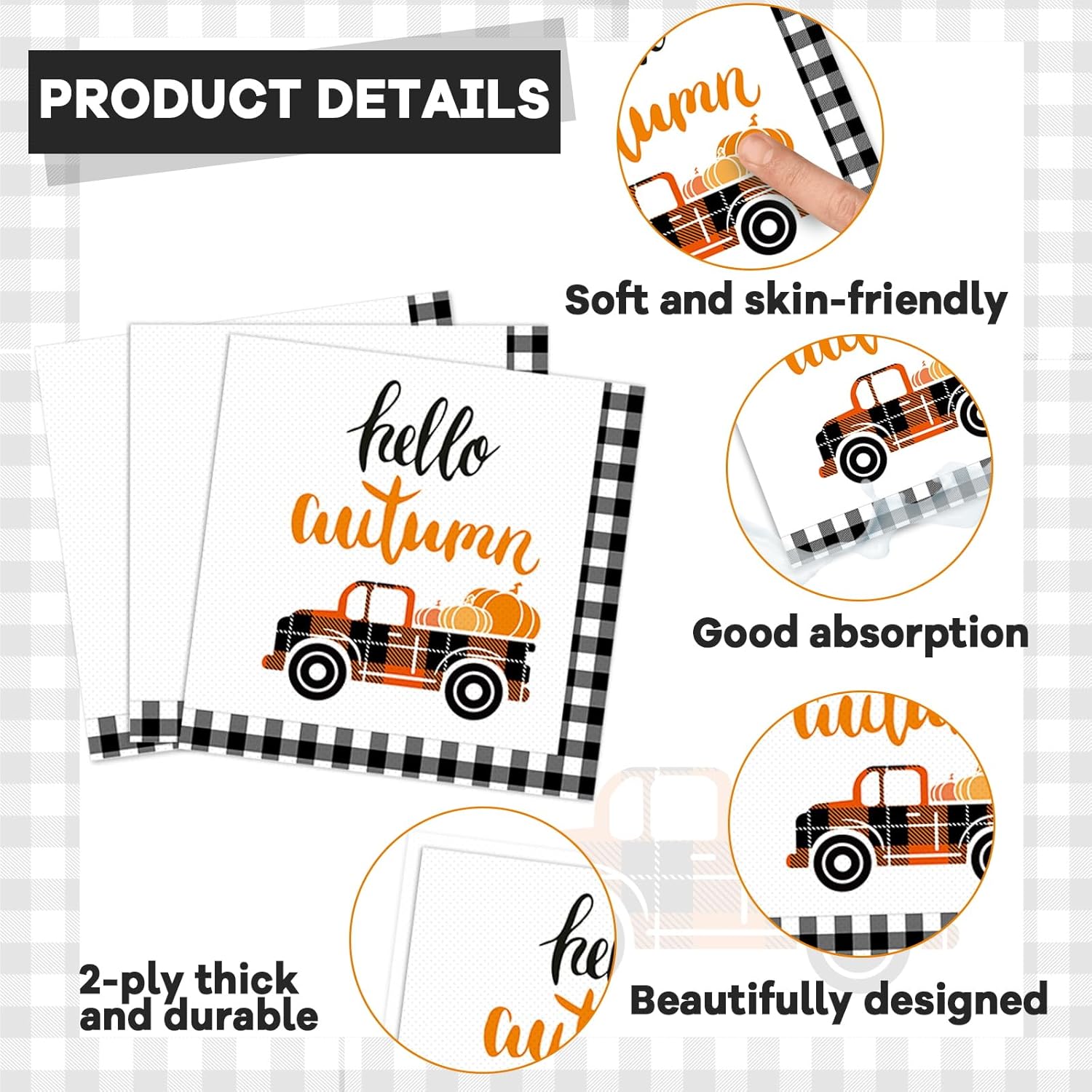 - Unique design: this fall thanksgiving buffalo plaid tableware set design consists of watercolor paintings of pumpkins, maple leaves and with the words "Harvest" and "Hello Autumn", these beautiful patterns create the atmosphere of autumn, bring the joy of harvest and feelings of gratitude.