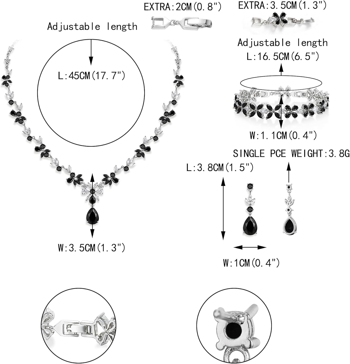 - If you are going out to a party or banquet, this birthstone bridal wedding dangle earrings necklace bracelet set is the perfect accessory that will enhance your outfit. With a fabulous water drop and flower CZ design and solid construction. It features sparkly CZs which will make a timeless accessory to any jewelry collection. This wedding jewelry set can be worn with classy casual or formal attire.