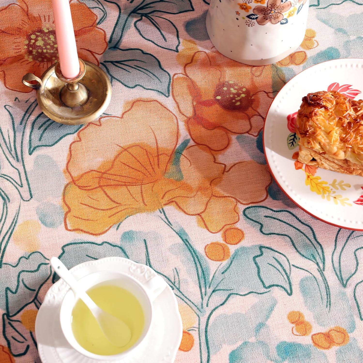 Vintage Linen Long Rectangle Tablecloth,Italian Orange Floral Soft and Wrinkle Resistan Table Cloth,Decor Table Cover for Kitchen,Dining,Thanksgiving,Christmas,63"*102"-Positano