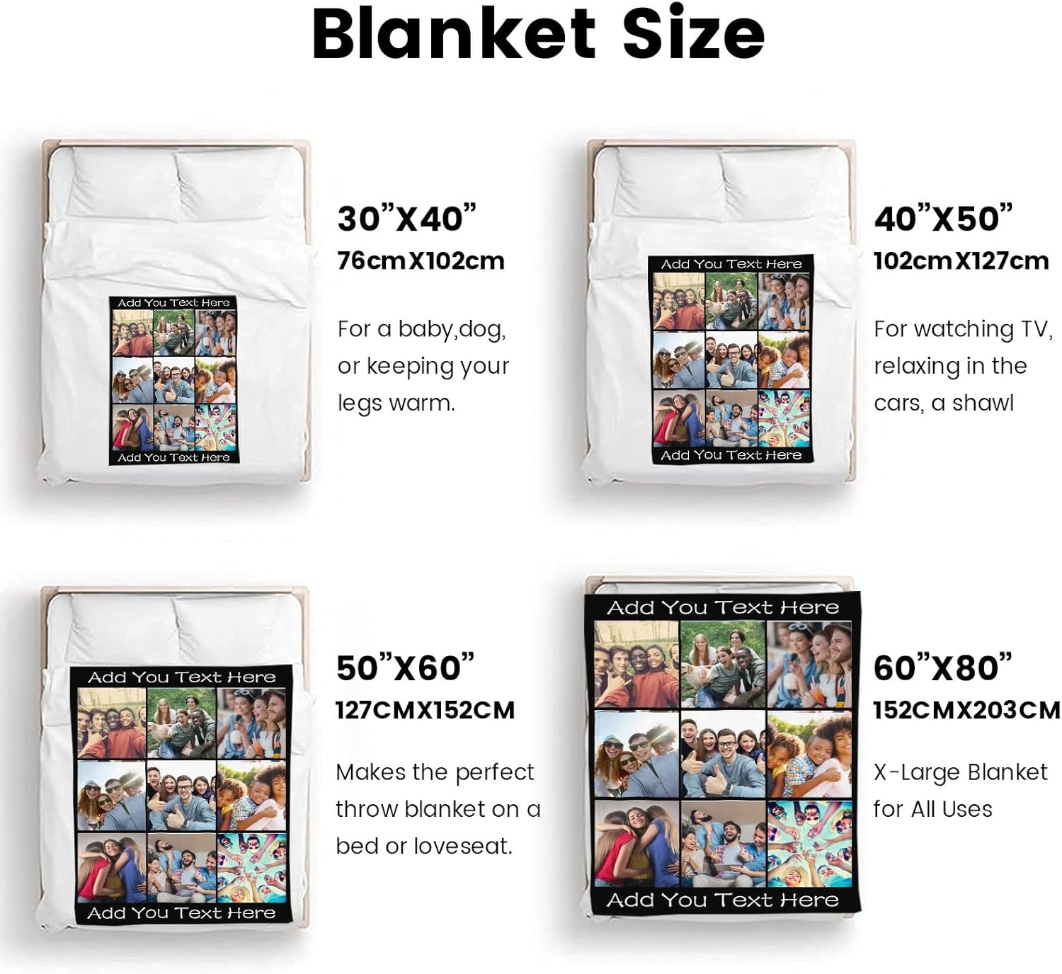 Custom Blanket with Photos Personalized Picture Collage Throw Blankets Gifts for Mother Father Lover Friend Customized Picture Gifts Flannel Blanket Christmas Birthday Wedding 60"X80" Made in USA