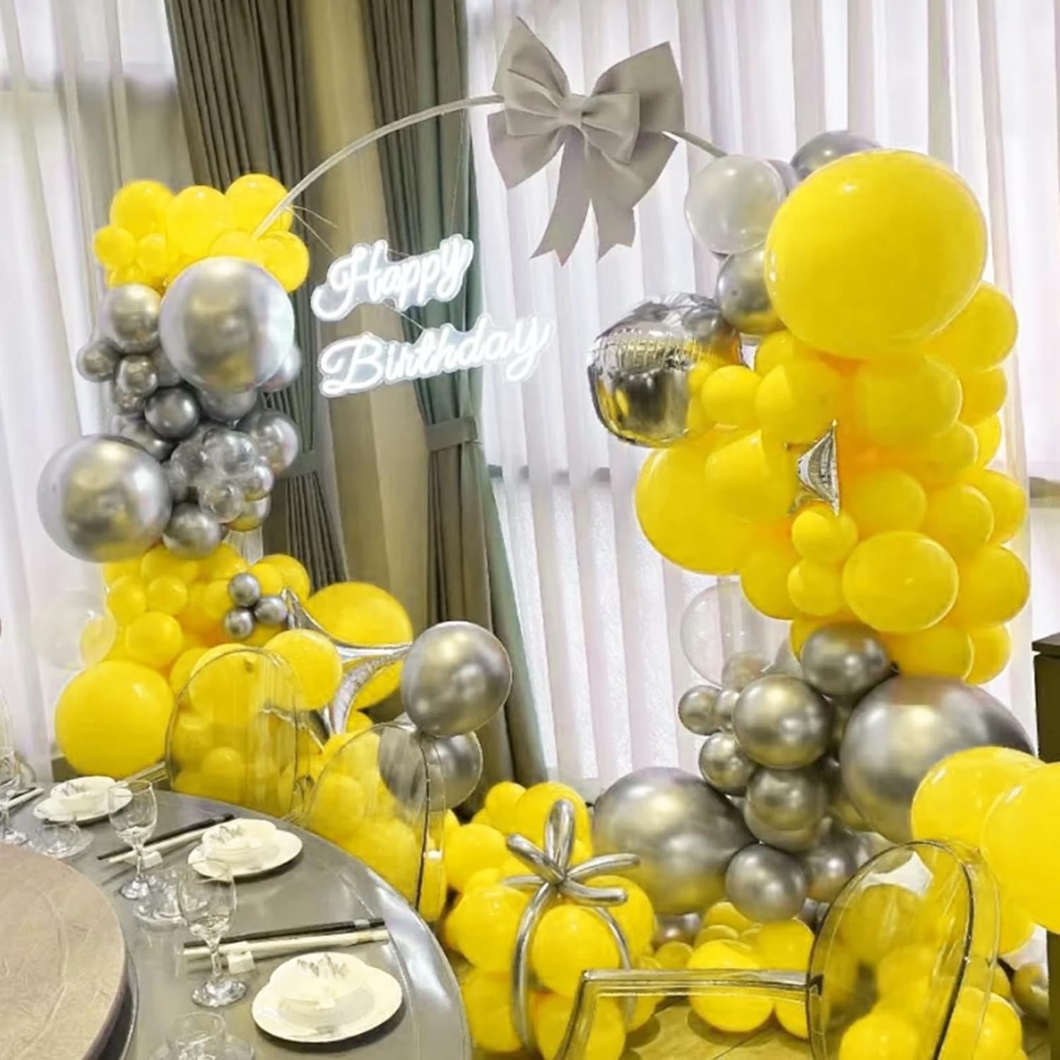 - Multipurpose Balloon Arch: yellow latex balloons of different sizes latex can make a perfect yellow balloon garland arch, Just let them make your party even more unique, it will be unforgettable. yellow party balloons are incredible party decorations in party supplies. yellow b alloons arch is perfect for Baby Shower, Bridal Shower, Wedding Decoration, Happy Birthday parties, Gender Reveal parties, bachelorette parties, Graduation parties, and other celebrations.