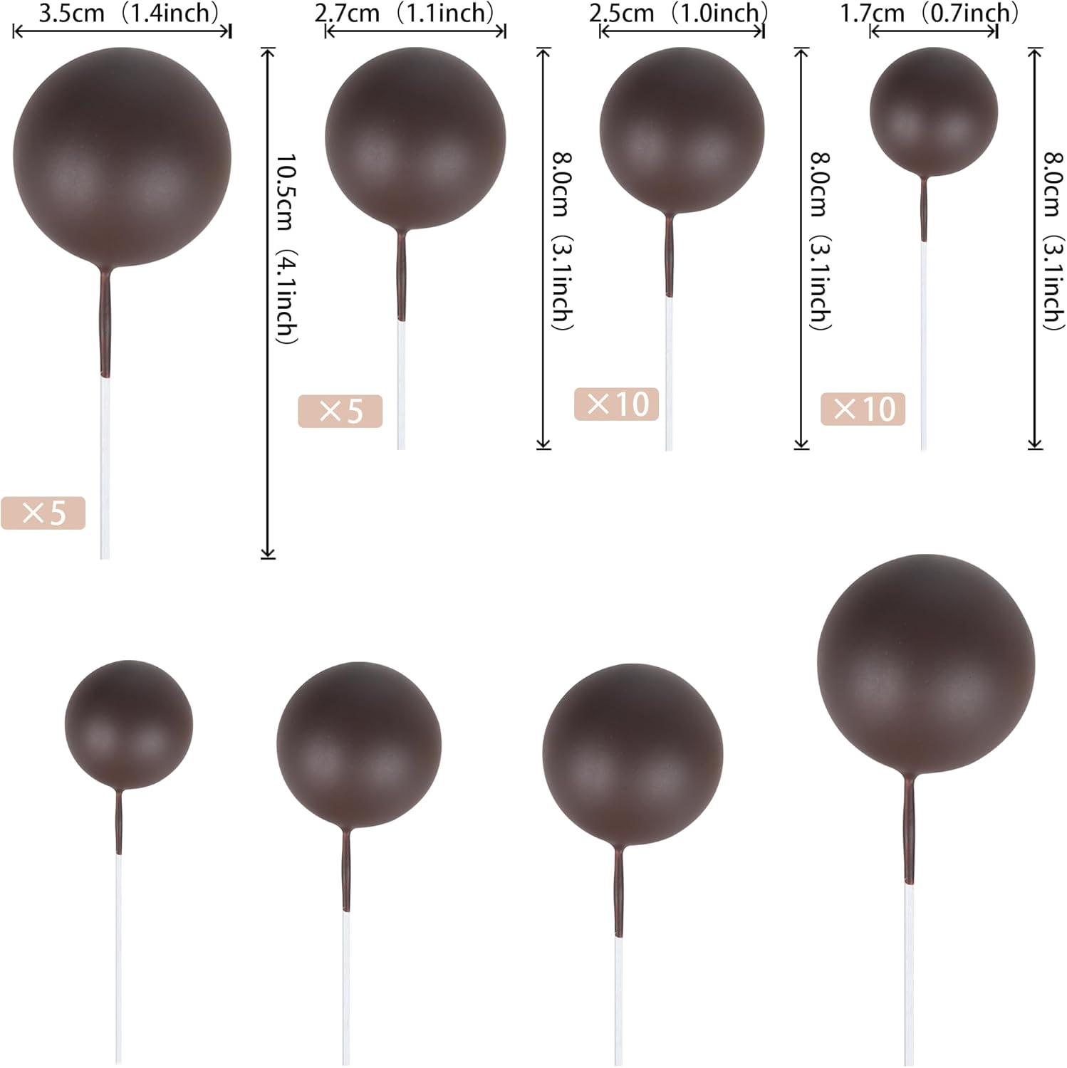 Rsstarxi 30 PCS Mini Balloons Cake Toppers - Foam Balls Insert Decorations for Baby Shower, Wedding Anniversary, Kids Birthday Party - Coffee