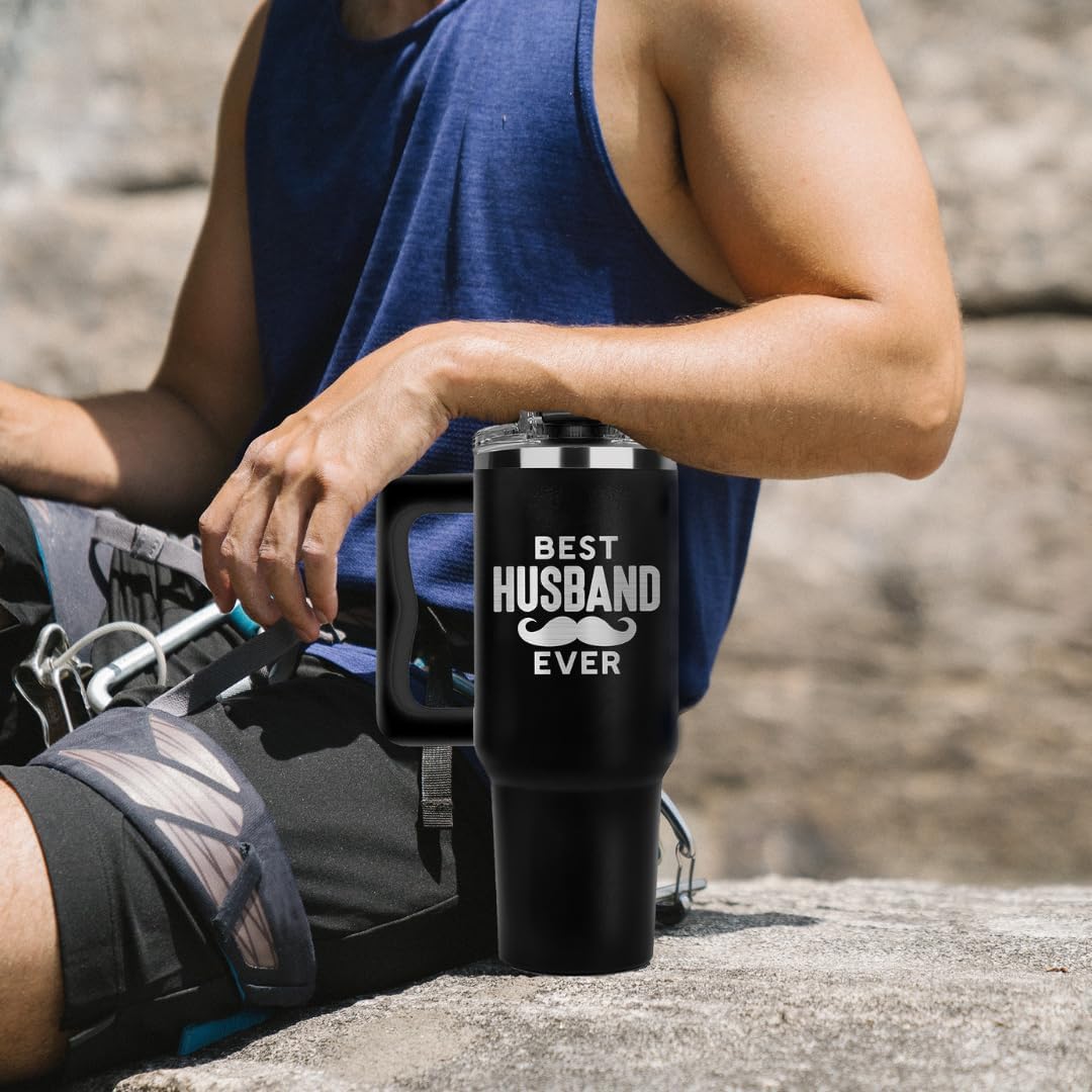 - Package Includes: Best Husband Ever Gifts For Him comes with 1 40oz tumbler with handle, 100% leakproof flip lid, 1 straw and 1 straw cleaner. Our coffee mug for husband is designed not to retain any strange smells or tastes, ensuring your beverages stay fresh and delicious.