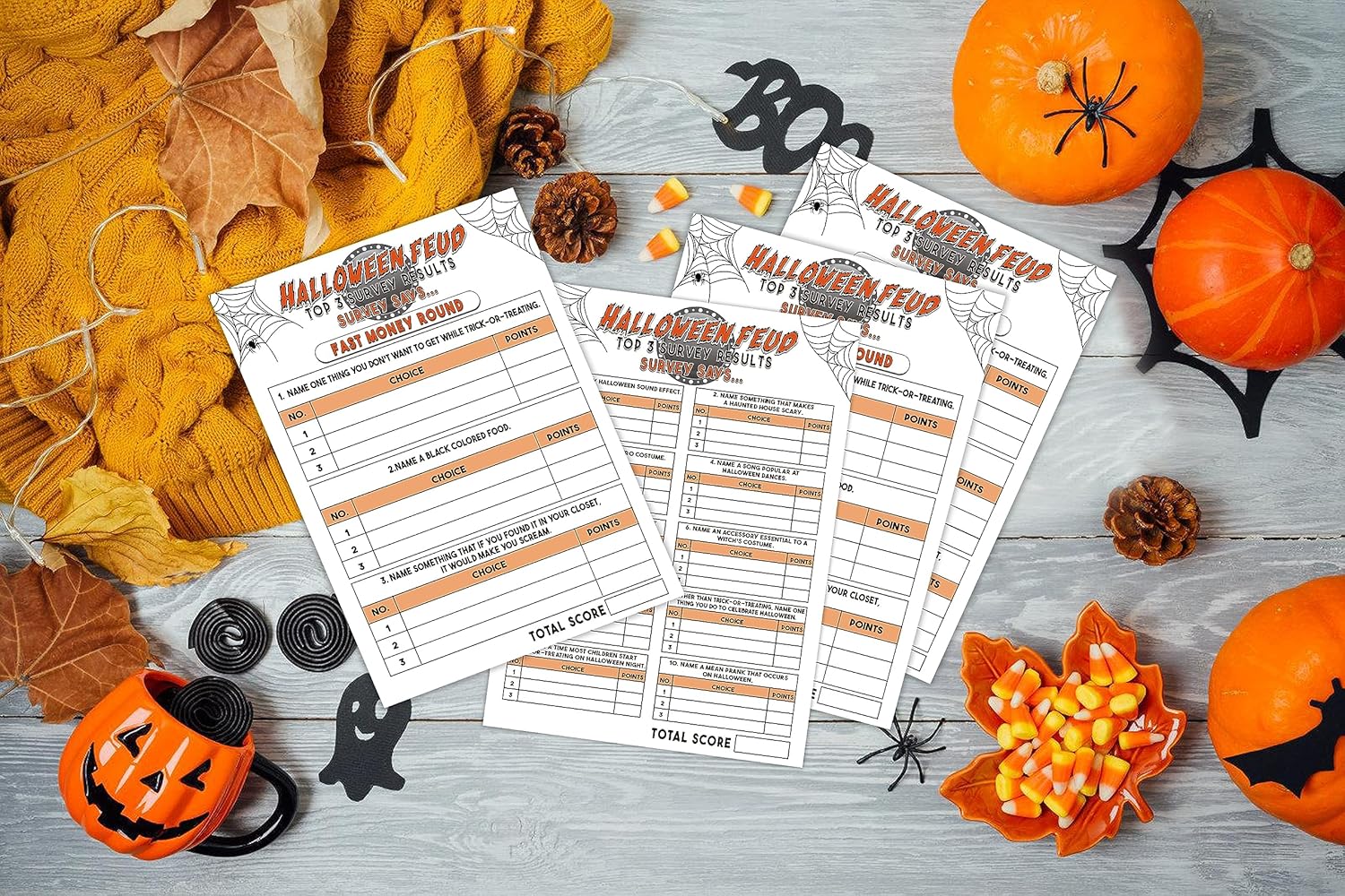 Halloween Friendly Feud Game, Family Game Night, Halloween Quiz, Halloween Trivia Adult Games, Halloween Party Game for Family Activity - 30 Halloween Feud Cards and 3 Fast Money Round Cards (02)