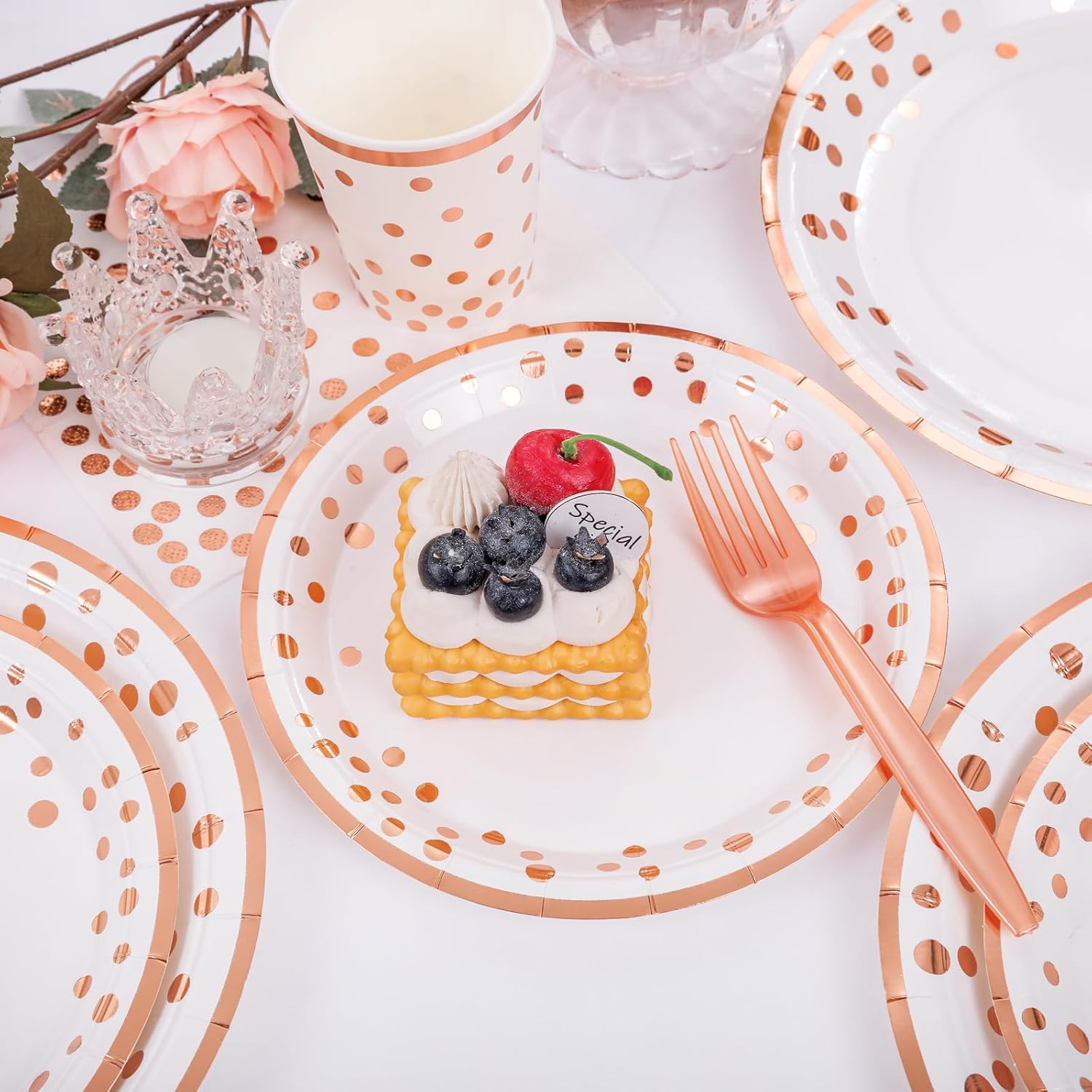 - Color : 350pcs Rose Gold Paper Dinnerware Set
