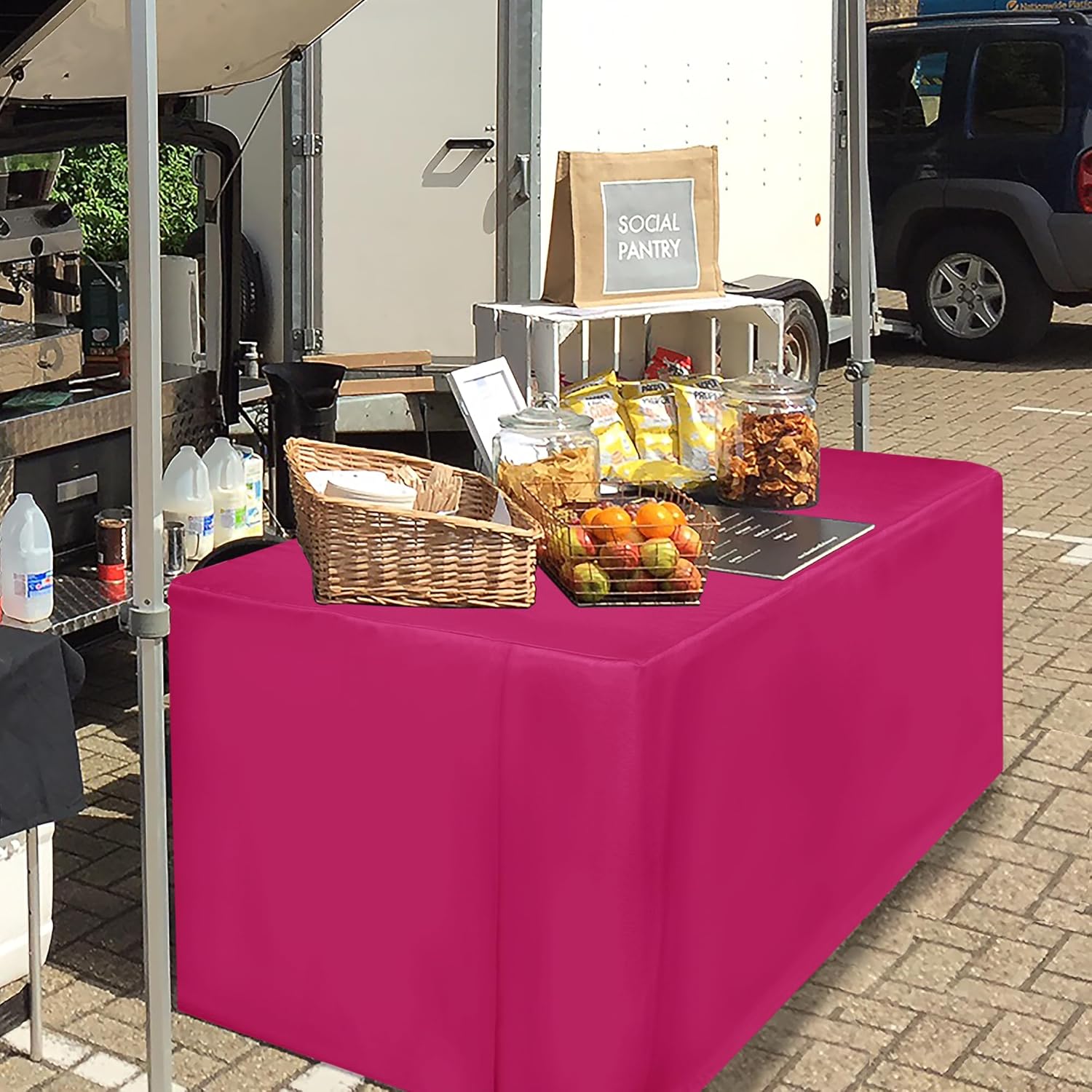 HolidayIdeas 2 Pack Fitted Tableclothes - 48 x 24 Inch - Fuchsia/Hot Pink Rectangle Tablecloths for 4 Foot Tables, Polyester Fabric Table Covers for Folding Table, Parties, Baby Shower, Trade Show