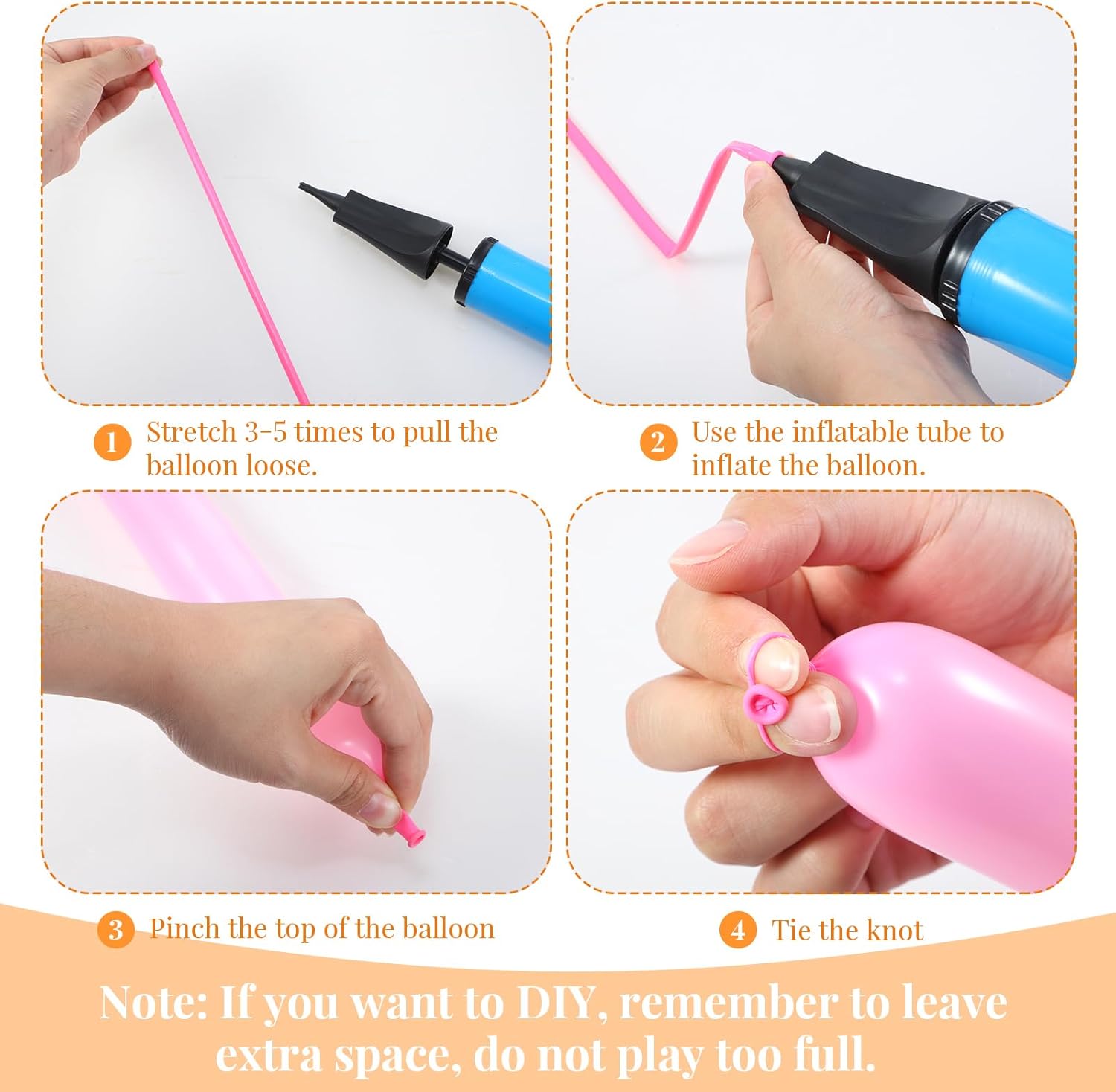 - Warm Notes: our long balloons are approx. 11.4 to 11.8 inch in length, after being inflated, will expand to 60 inch in length; Please do not fully inflate, you need to leave some room to avoid blowing up when twisting; You'd better inflate the balloons with a balloon pump