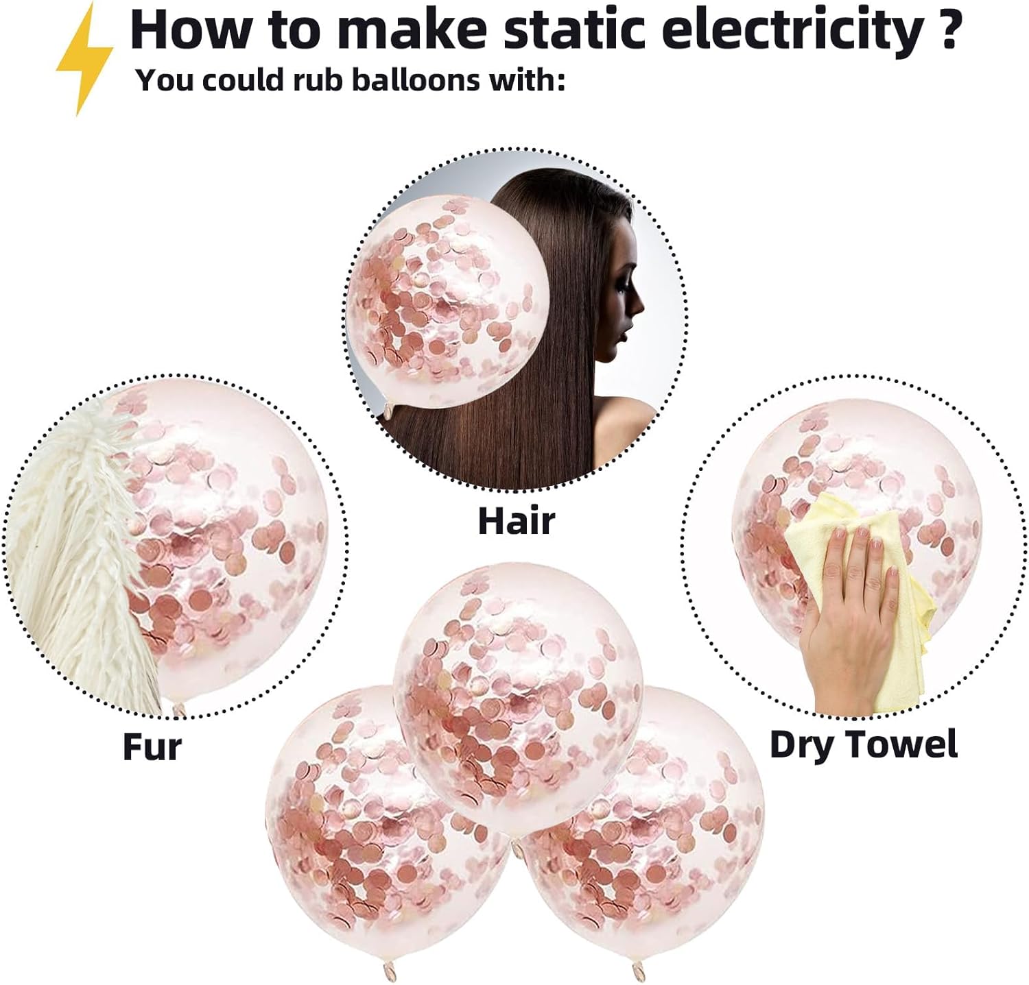 - TIPS: After inflating, you can shake/rotate the confetti balloons and then gently rub them on your hands, hair, carpet or blanket to create static electricity, the confetti will stick to one side, which can make your balloons more beautiful.