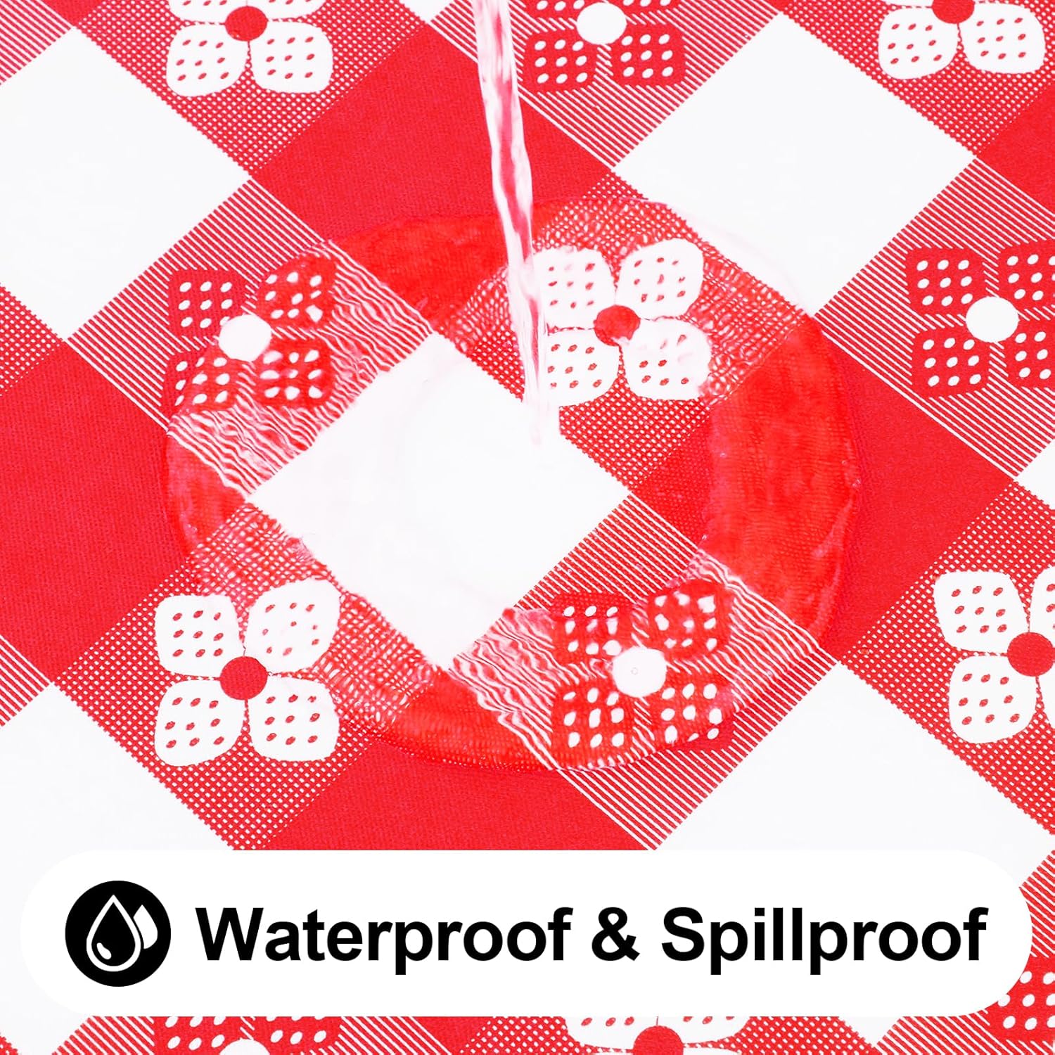 - [Waterproof and Stain Proof] High-quality vinyl tablecloth surface acts as an impermeable barrier to water, preventing any leaks and ensuring your table stays shielded from spills and stains.