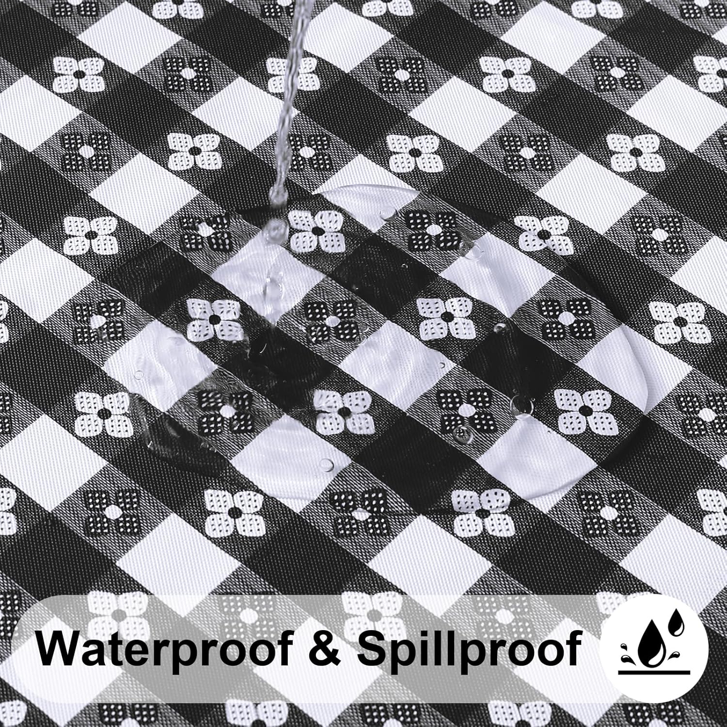 - [Waterproof and Stain Proof] High-quality vinyl tablecloth surface acts as an impermeable barrier to water, preventing any leaks and ensuring your table stays shielded from spills and stains.