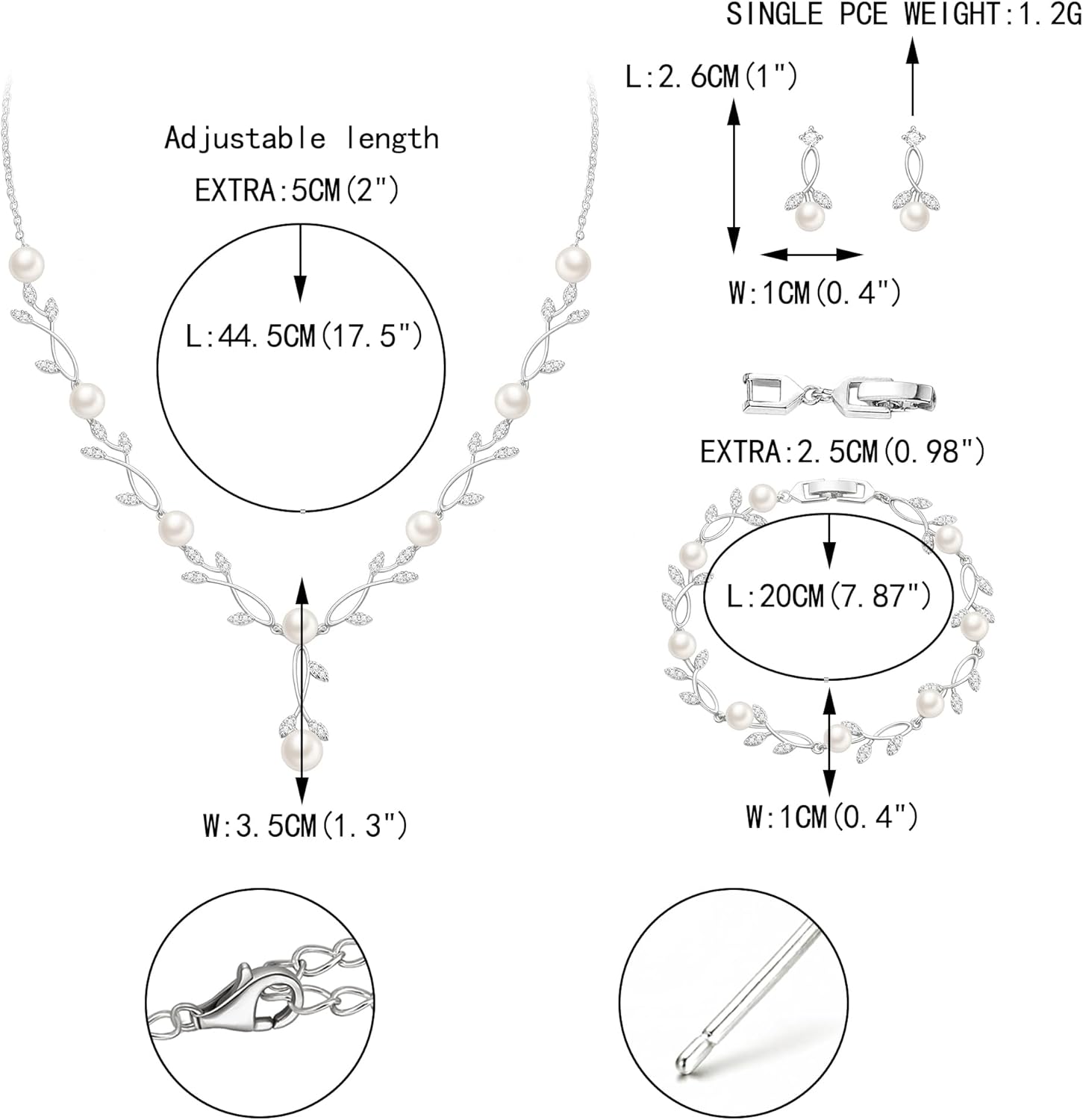 - Bridal Pearl Necklace Length: 44.5cm(17.5")-49.5cm(19.5"), Attachment Size: 20.5cm(8")by3.5cm(1.3"). Earring Size: 2.6cm(1")by1cm(0.4"). Bracelet Length: 20cm(7.87")-22.5cm(8.86"), Width: 1cm(0.4").