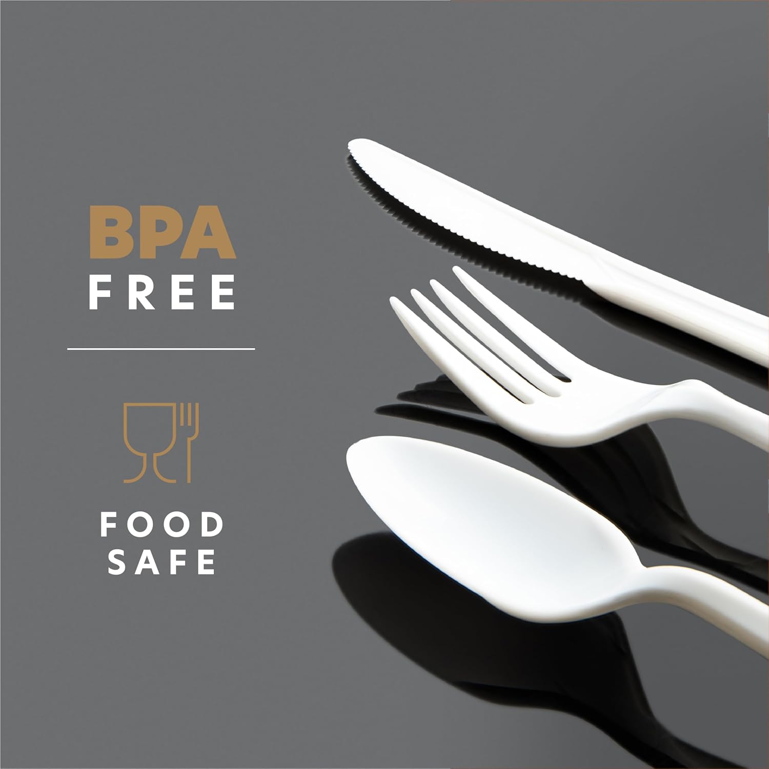 - Medium weight plastic cutlery for parties, dinners, and more. Made with food safe and quality BPA free plastic.