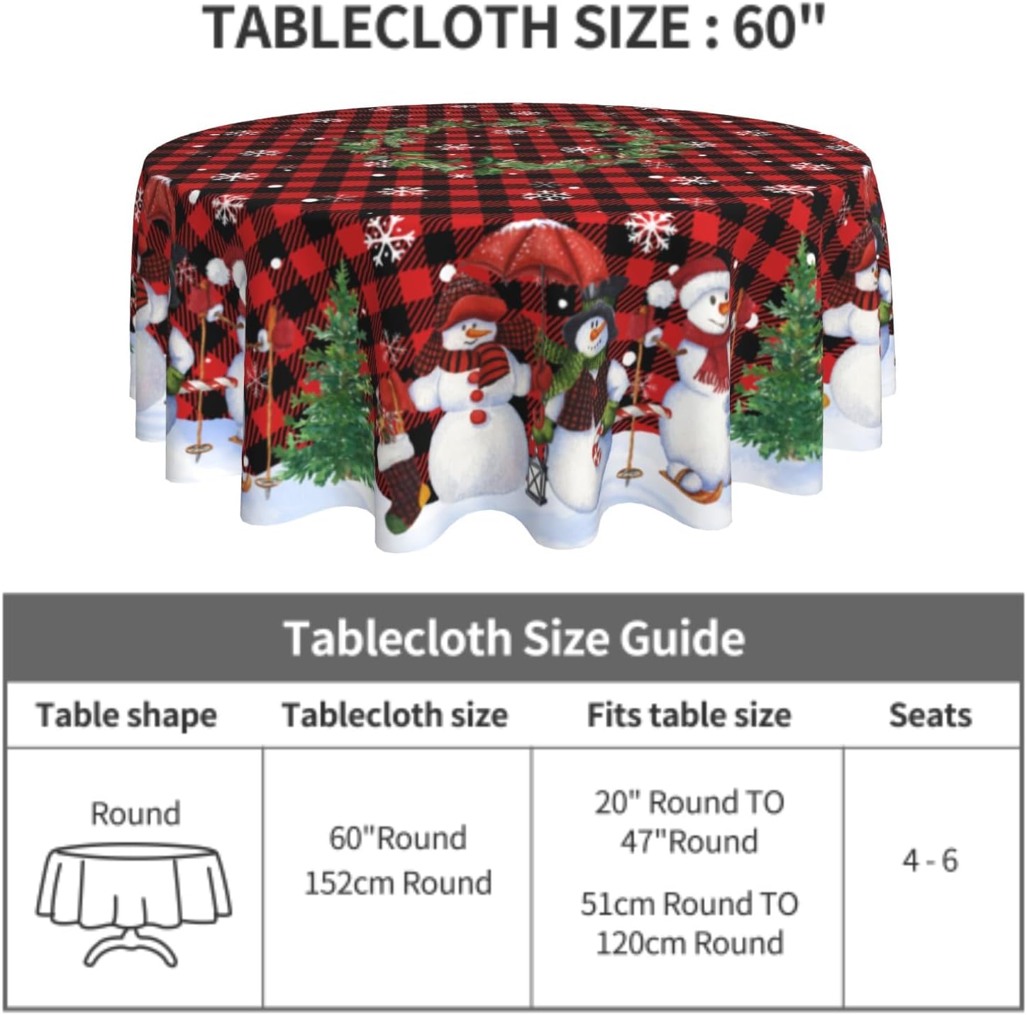 - PREMIUM MATERIAL: The snowman round tablecloth is made of high quality waterproof polyester fabric with a warm and soft feel.
