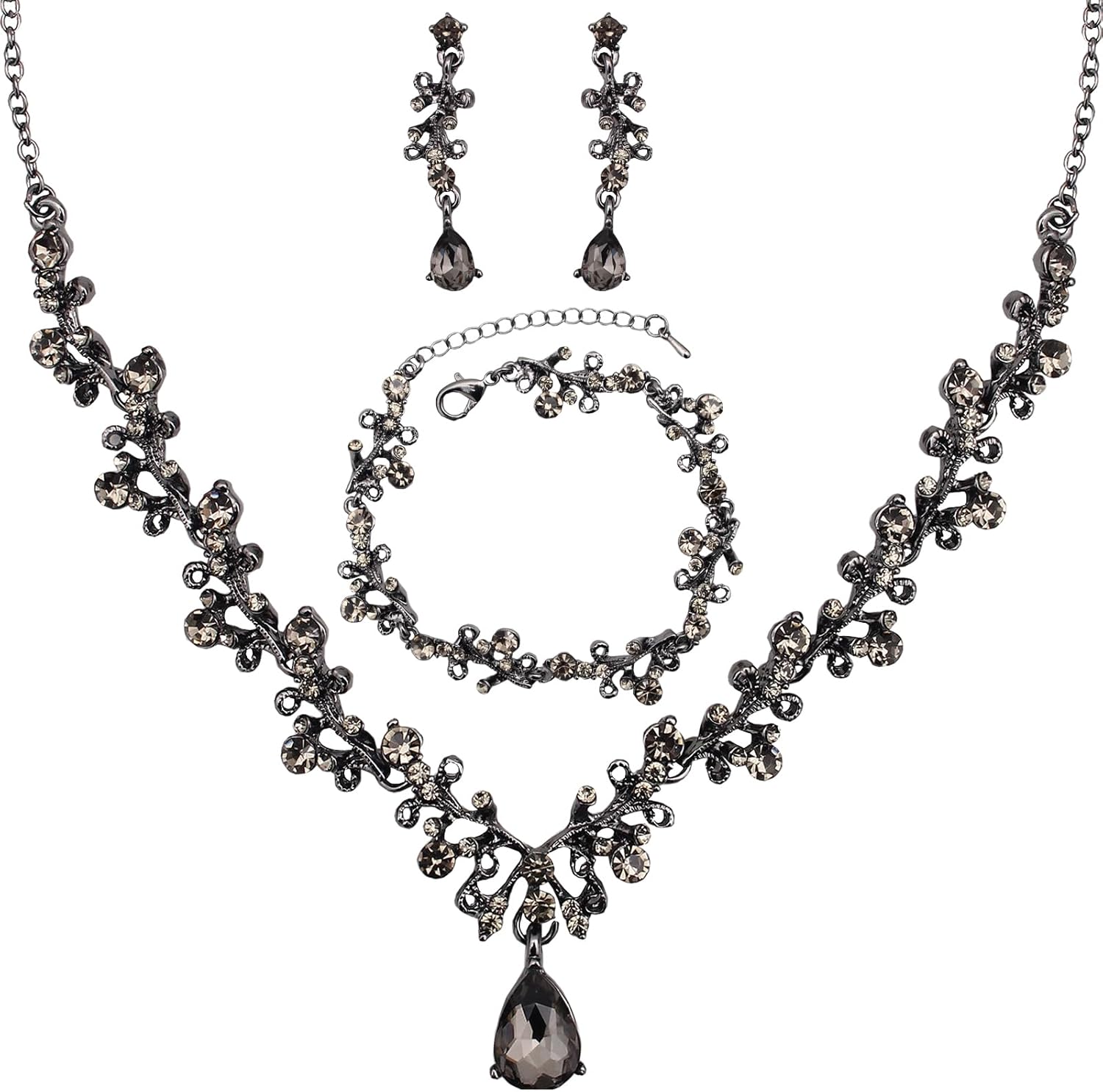 3Pcs Austrian Crystal Jewelry Set for Women, Necklace Dangle Earrings Link Bracelet Jewelry Set with Gold/Platinum/Gun Plated, Wedding Party Jewelry for Bridal Bridesmaid