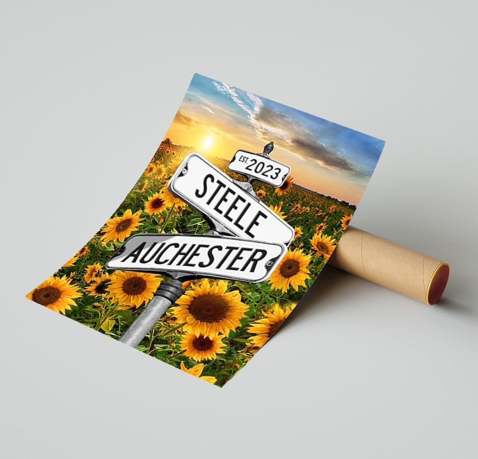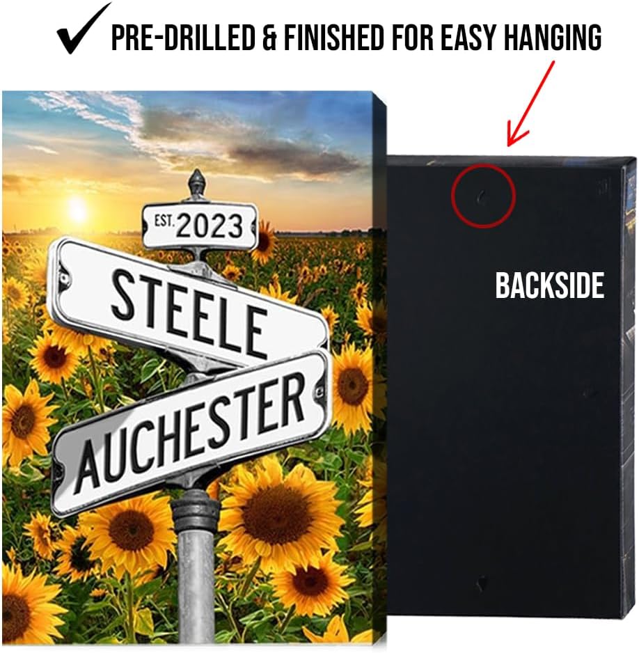 Personalized Name Vintage Street Sign Canvas Poster Love Gifts, Crossroads Wedding Date Names Street Signs Sunflower Poster Canvas Love Gift For Anniversary,Wedding,Birthday And Holidays