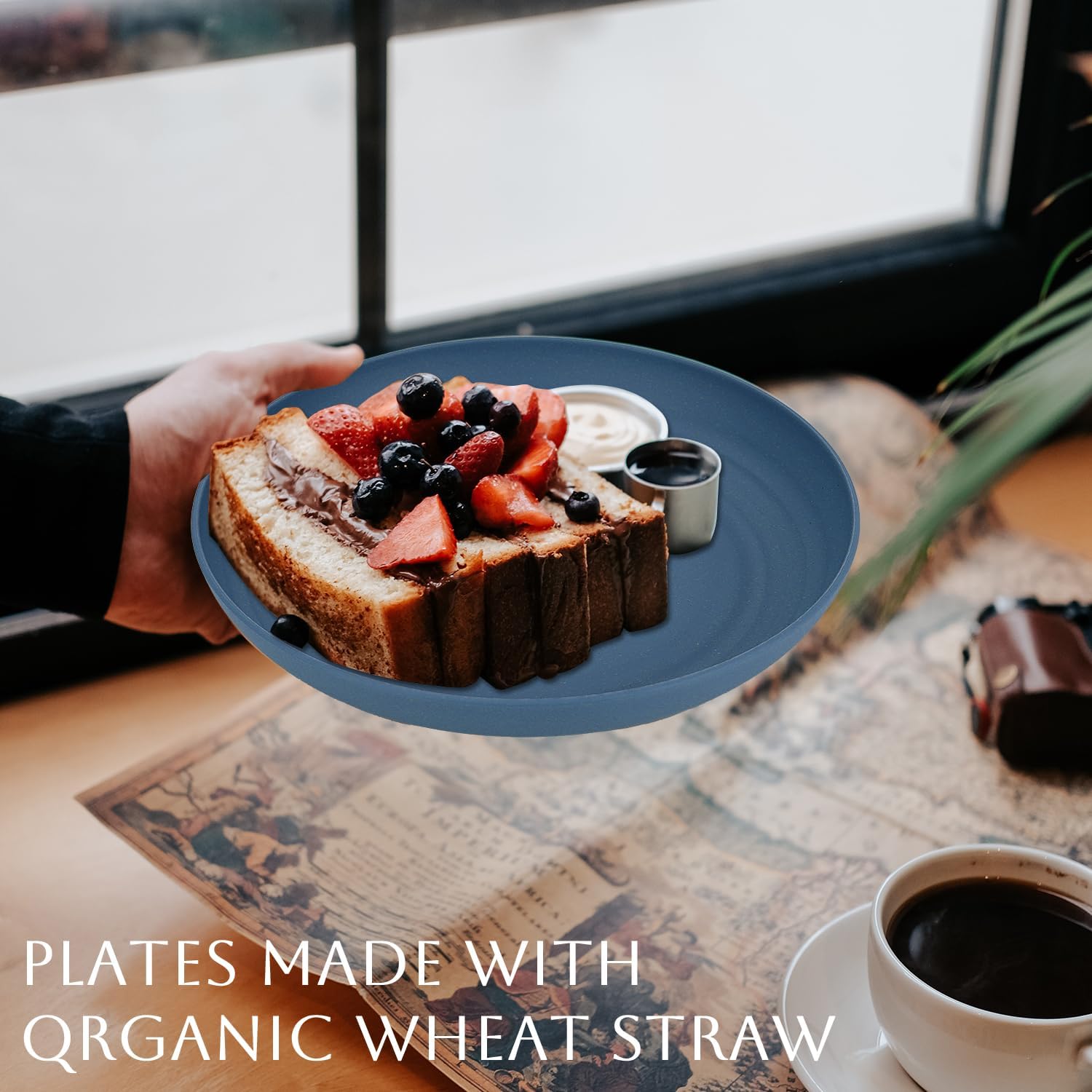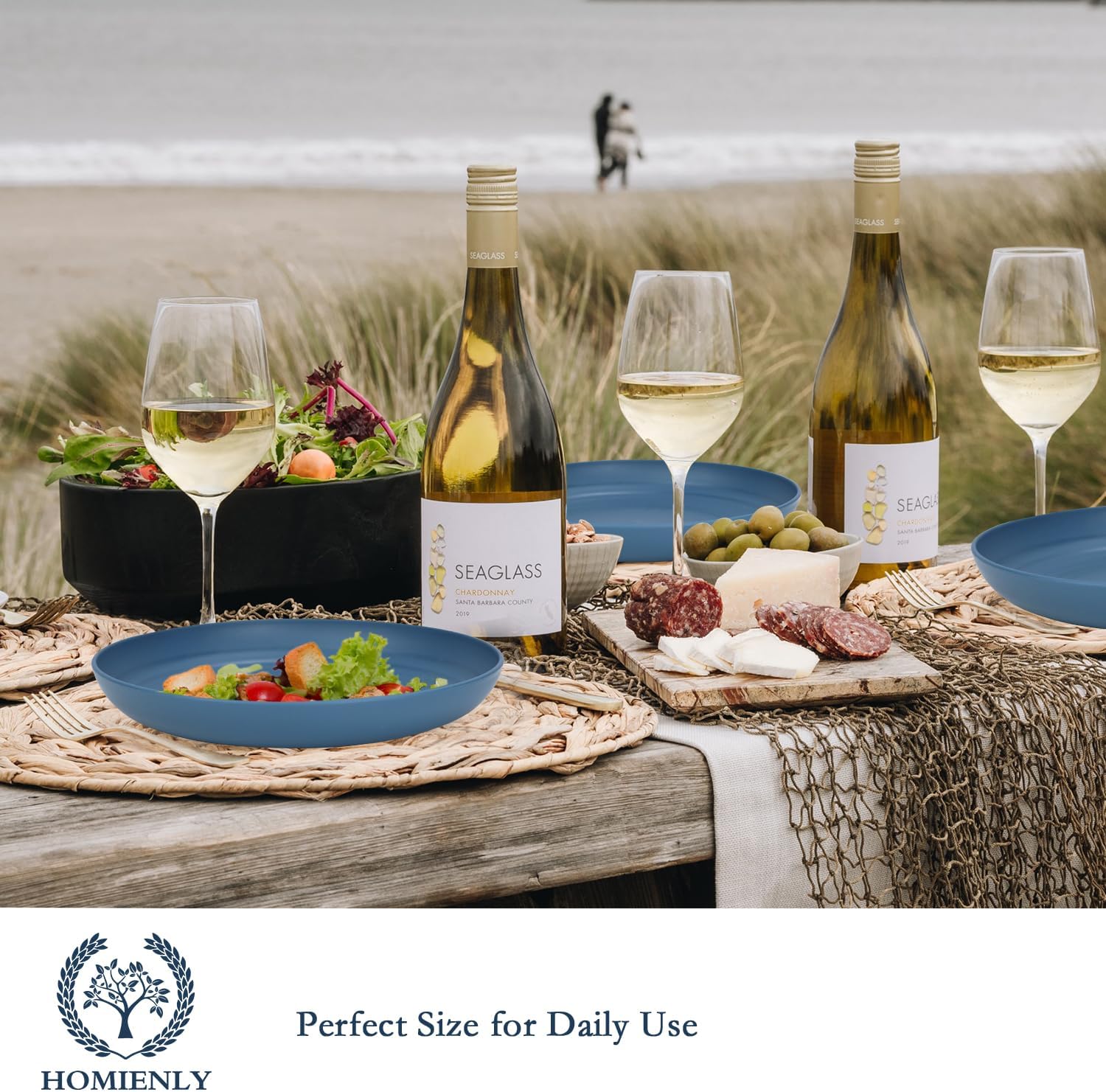 Homienly Deep Dinner Plates Set of 8-9 inch Alternative for Plastic Plates Microwave and Dishwasher Safe Wheat Straw Plates for Kitchen Unbreakable Plate Set (Blue)