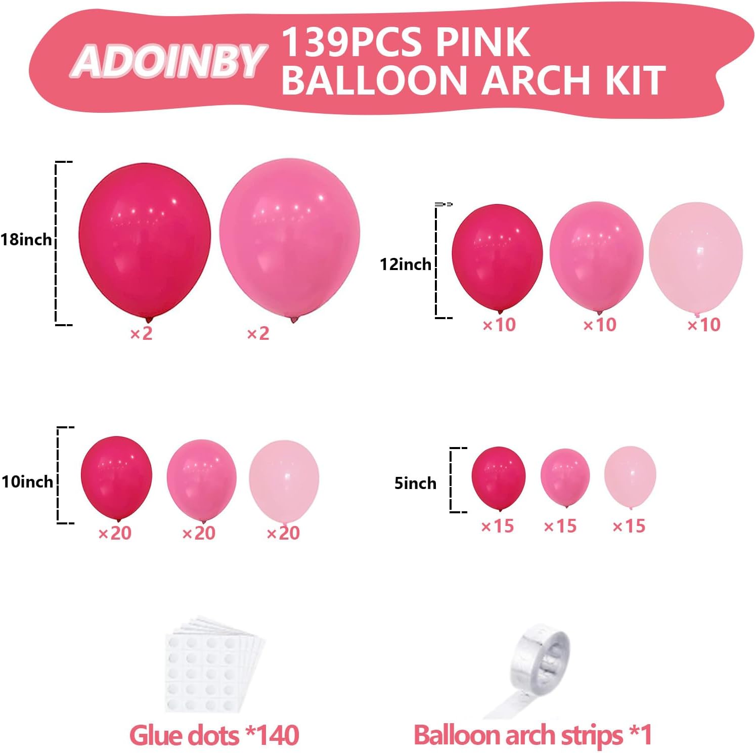 - 🎀【Pink Balloon Garland Arch Kit】:Include 18''(Hot pink balloons 2, Pastel Pink balloons 2),12''(Hot pink balloons 10, Pastel Pink balloons 10, Pink balloons 10), 10''(Hot pink balloons 20, Pastel Pink balloons 20, Pink balloons 20),5''(Hot pink balloons 15, Pastel Pink balloons 15, Pink balloons 15),16FT garland strip x1,140 dots glue.