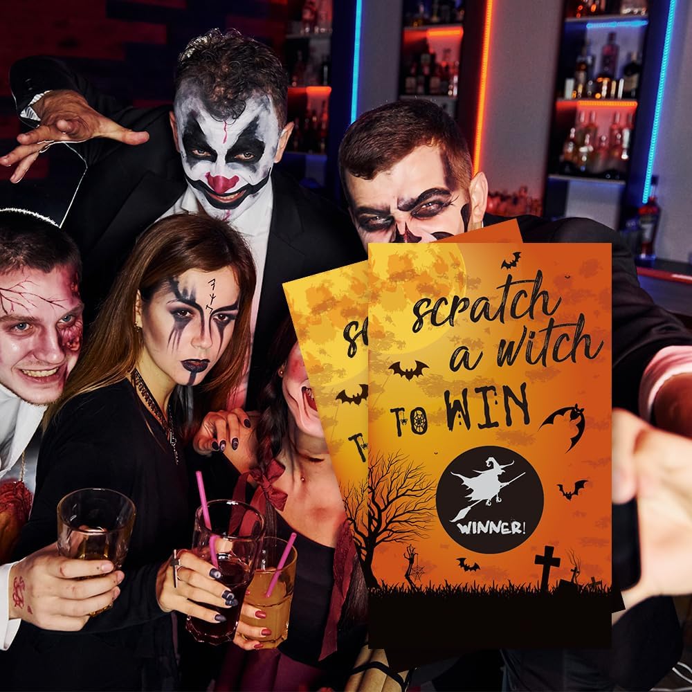 Haizct 50 Pack Halloween Theme Scratch off Game, Spider Witch Bat Halloween Scratch Card for Baby Shower Halloween Party Game Lottery Games Group Games Family Activity, Bridal Shower Activity and Idea
