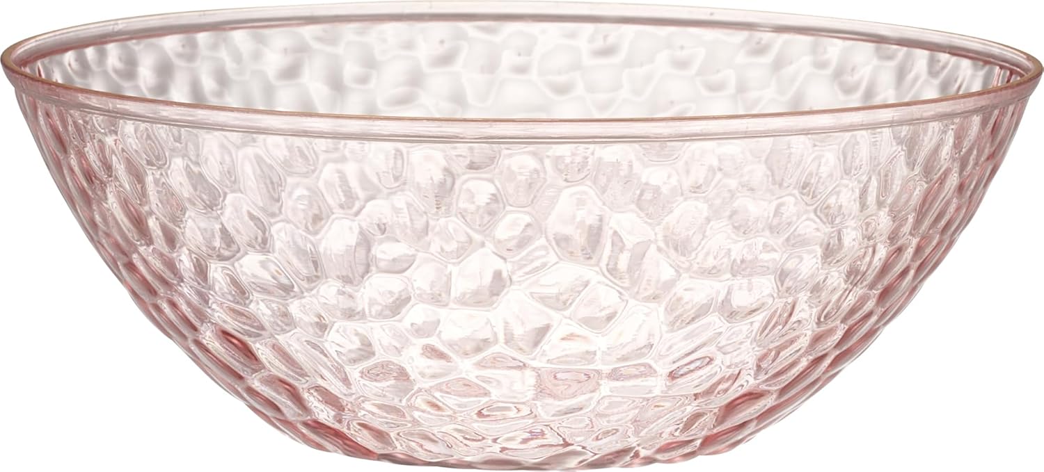 - Package includes 30 12 Ounce transparent Pink hard plastic soup bowls with gold rim and hammered design. Large pack of 30 Bowls is great for parties or stocking up your home.