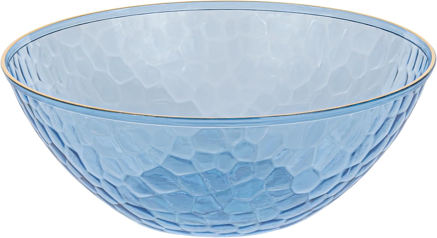 - Package includes 30 12 Ounce transparent Blue hard plastic Soup Bowls with gold rim and hammered design. Large pack of 30 Bowls is great for parties or stocking up your home.
