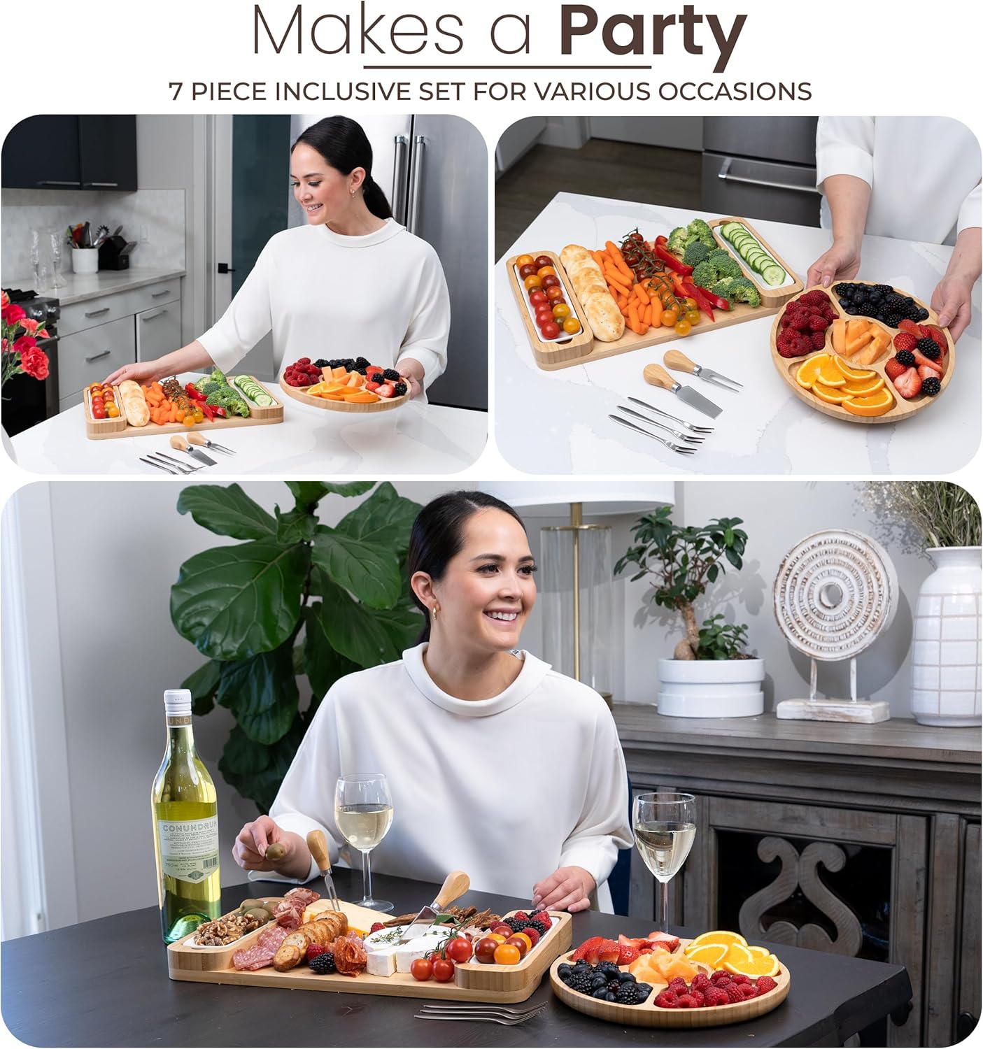 Charcuterie Board Gift Set - Bamboo Cheese Board & Serving Tray for Meat, Cheese, Crackers, Fruit - Large Wooden Charcuterie Boards for Parties - Wedding, Housewarming, Birthday Gifts for Women