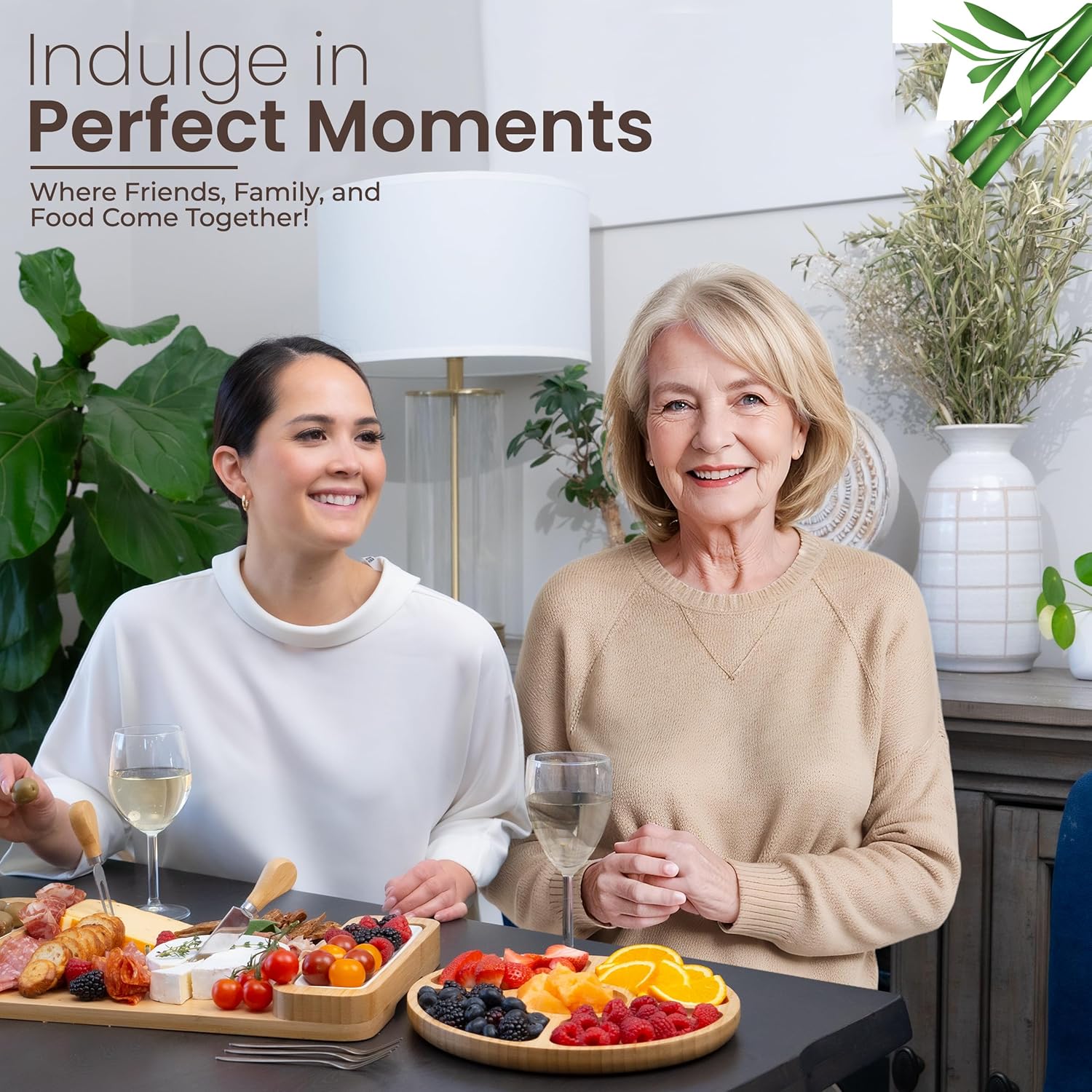 - IDEAL GIFT SET: This elegant bamboo charcuterie board set makes a memorable Mothers Day gift for mom, and a great gift for women, men, couples, or anyone who loves hosting. Whether for him, her, or a couple, this cheese board set is a stylish and practical addition to any home. Perfect for romantic dinners, anniversaries, or as a thoughtful gesture, it adds a touch of sophistication to any special occasion.