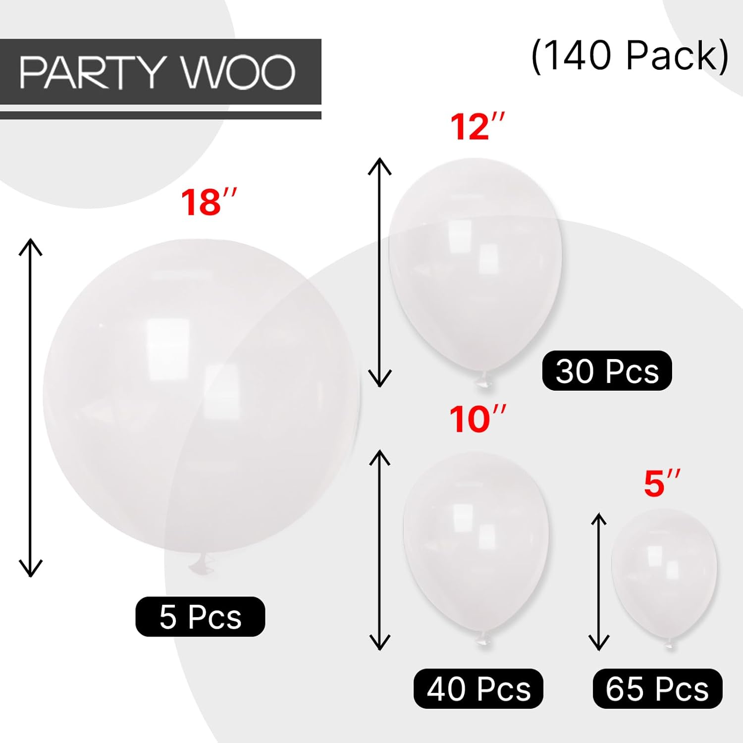 PartyWoo Clear Balloons 140 pcs Different Sizes of 18 12 10 5 Inch Transparent Bubble Latex Helium Balloon Arch Kit Garland for Graduation Wedding Baby Shower Birthday Party Decorations Clear-Y2