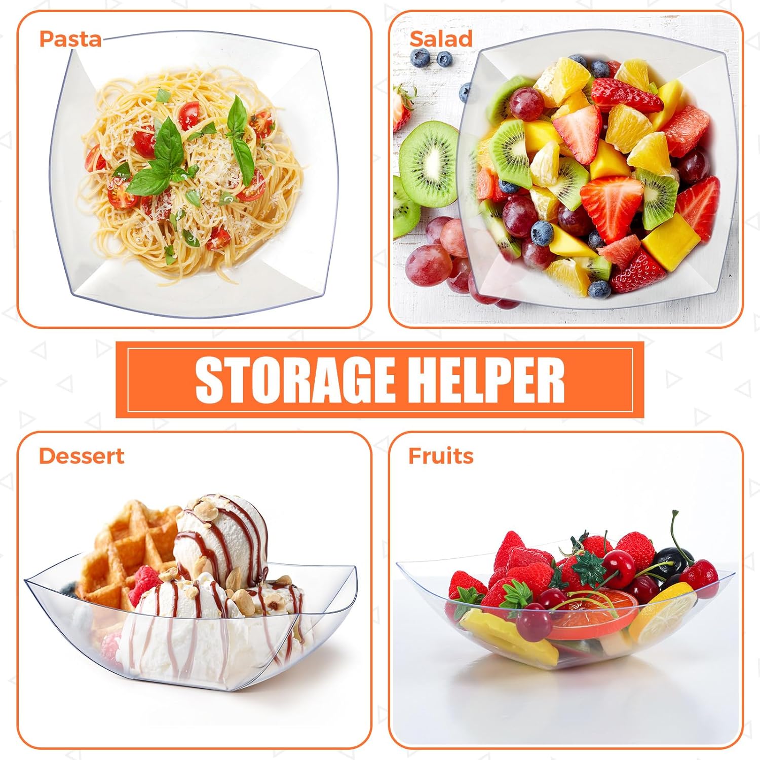 - What You Will Get: you will get 50 pieces of square plastic disposable bowls for parties altogether, available in white, 32 ounces, suitable foods include pasta, salad, steak, fried noodles, rice, etc; suitable for parties, family dinners, holidays and so on.