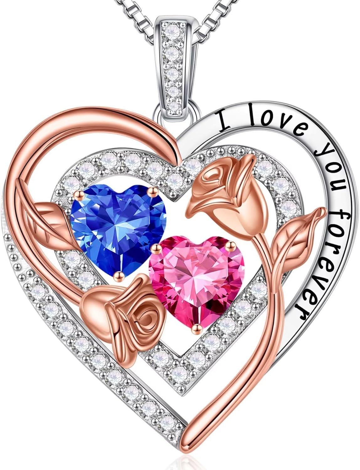 Iefil Birthstone Necklace for Women - Sterling Silver Birthstone Necklace Anniversary Birthday Gifts for Her Wife Mom Daughter
